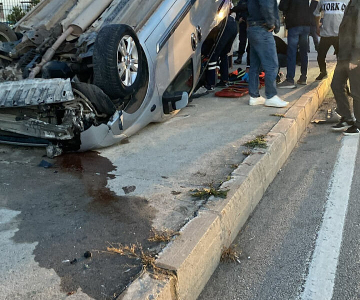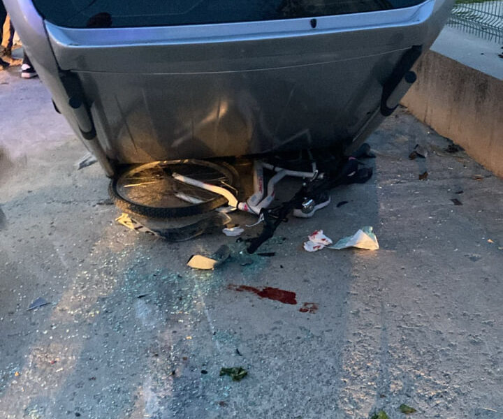 Otomobil, kaldırımda bisiklet süren Emir’in üzerine devrildi