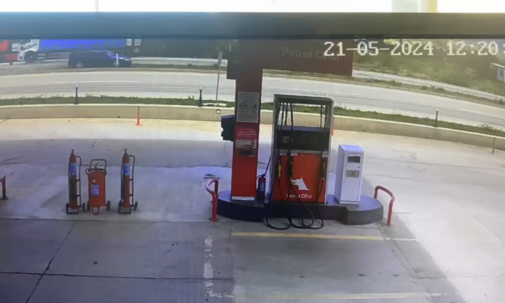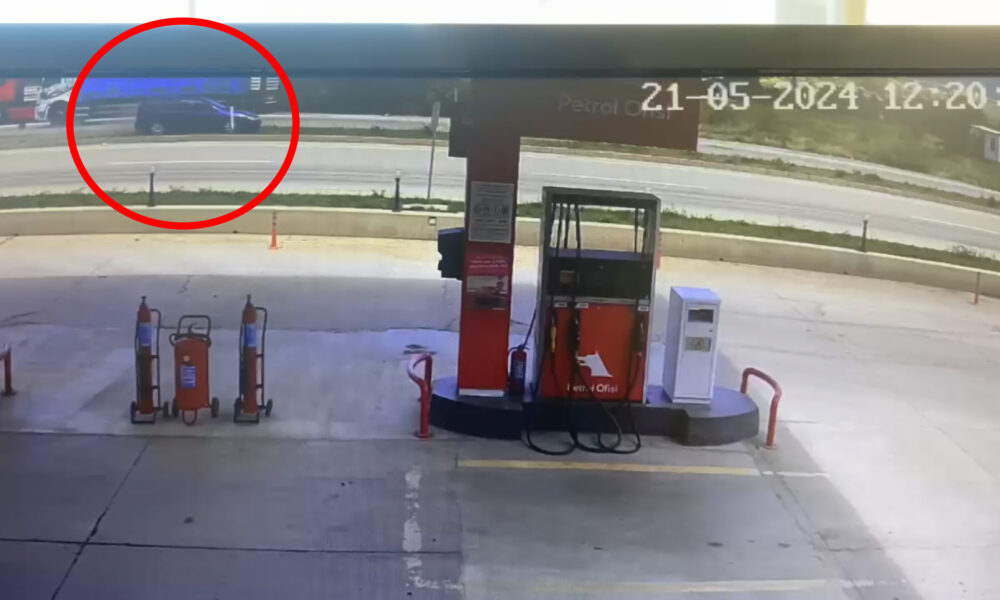 Bu arada, otomobilin yoldan çıkıp karşı şeride geçtiği an bir akaryakıt istasyonunun kamerasına yansıdı. Kazayı yara almadan atlatan kamyon sürücüsü ifadesinin alınması için karakola götürüldü.