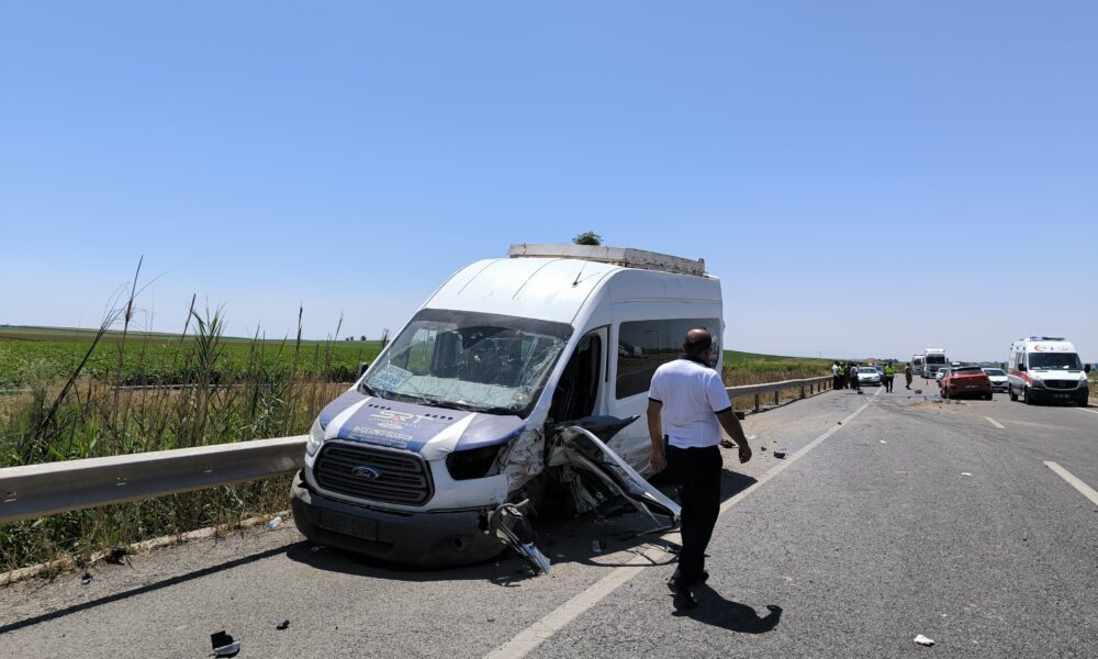 Otomobil, karşı şeride geçip minibüsle çarpıştı: 12 yaralı