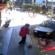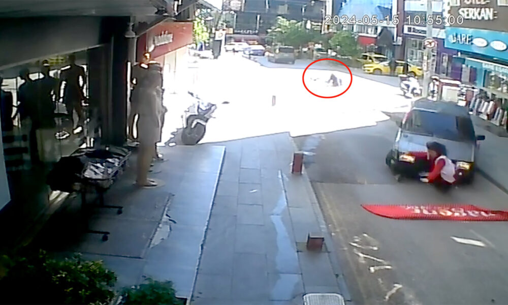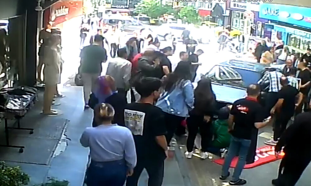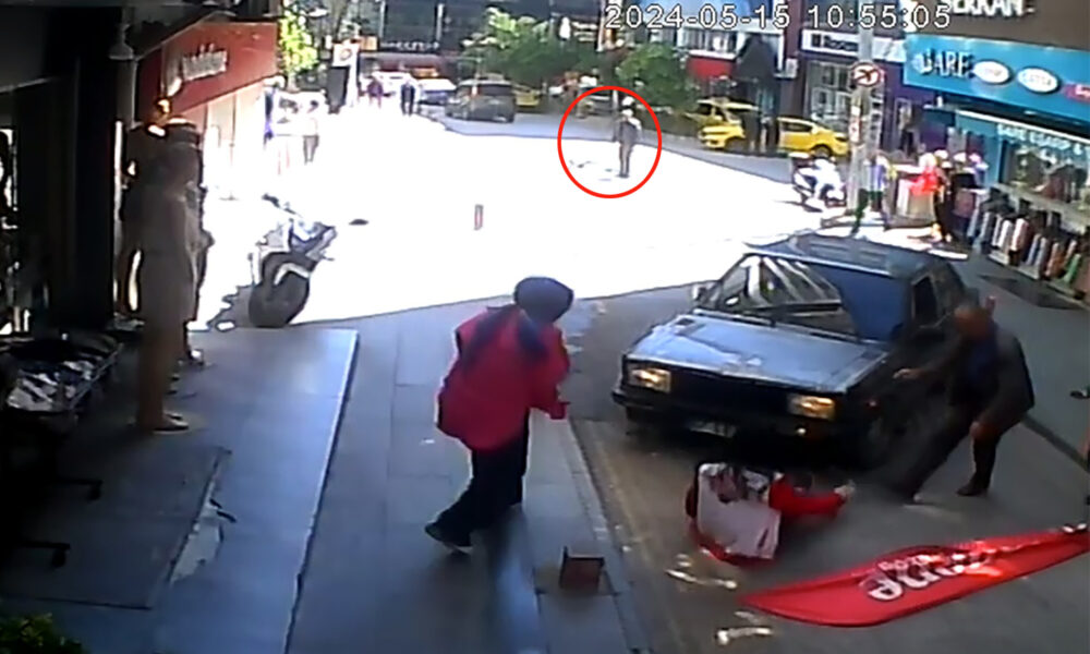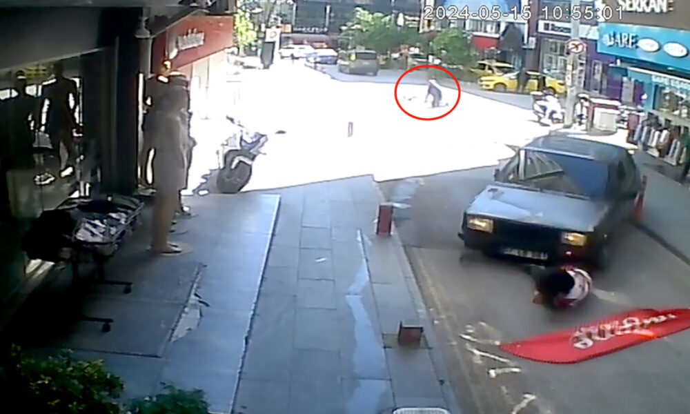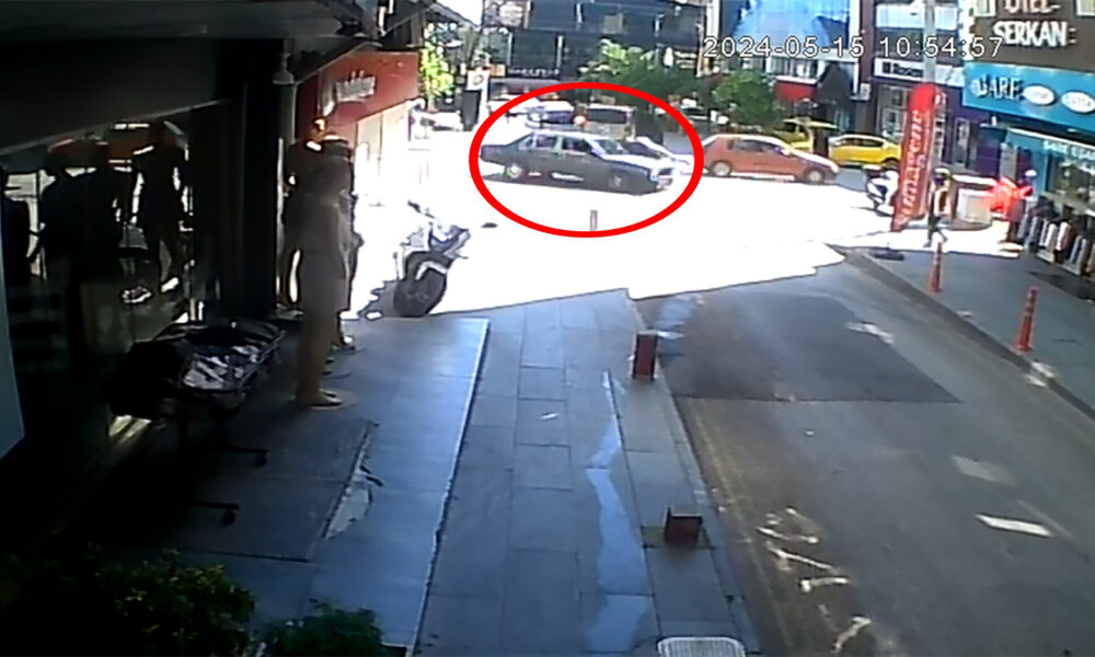 Kaza anı bir iş yerinin güvenlik kamerasına yansıdı. Görüntüde seyir halindeki otomobilin önünde ilerleyen bisikletliye ardından da kaldırımda yürüyen yayaya çarptığı, savrulan yayanın aracın altında kalmaktan son anda kurtulduğu anlar yer aldı. Kaza sonrası çevredekilerin yaralıların yardımına koştuğu görüldü.