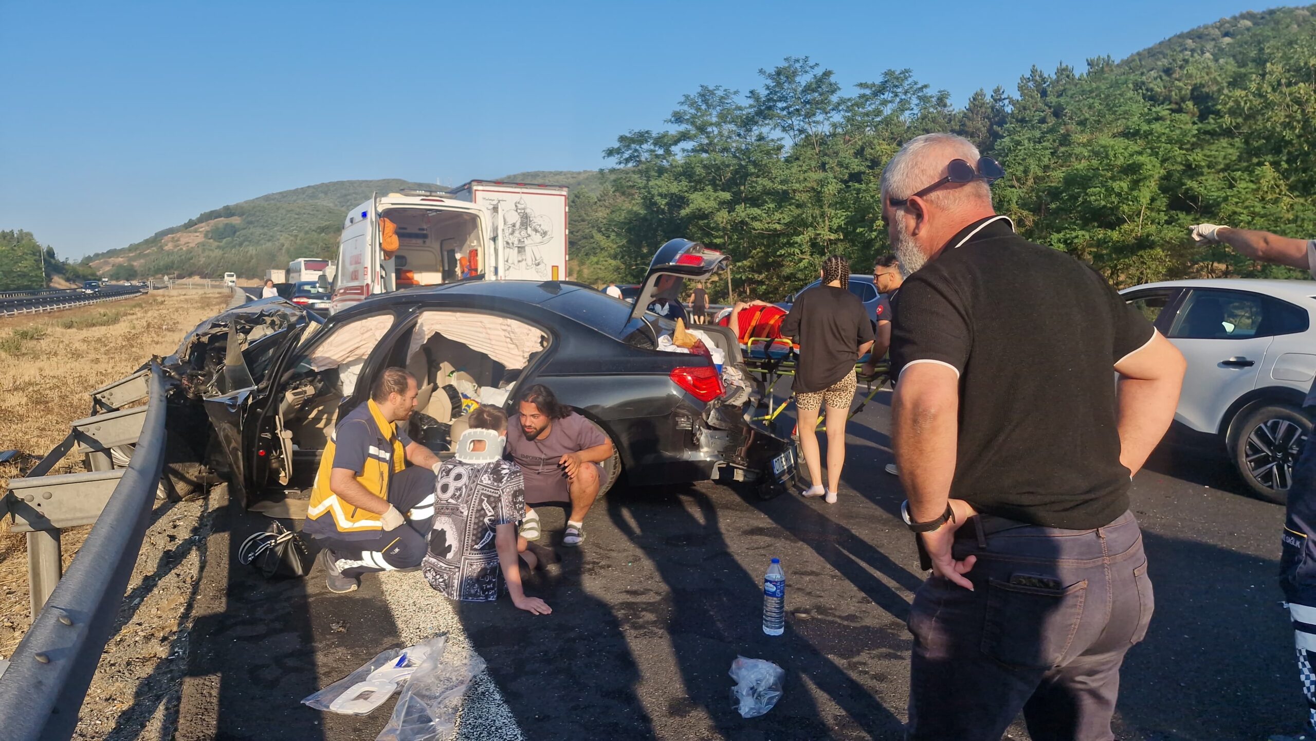 Kaza, sabah saatlerinde Anadolu Otoyolu’nun Gümüşova ilçesi geçişinde meydana geldi. Ankara’dan İstanbul yönünde ilerleyen CT 53 MNT Romanya plakalı otomobil, aynı yönde giden sürücüsünün ismi ve plakası öğrenilemeyen patates yüklü kamyona, ardından da bariyerlere çarptı. Kazada, otomobildeki Romanya uyruklu Ecaterina C., Tulian C., David Gabriel C., Teodora C. ve Renas I. yaralandı. Çevredekilerin ihbarı üzerine kaza yerine sağlık ve jandarma ekipleri sevk edildi. Yaralılar, çevredeki hastanelere kaldırıldı. Kazanın ardından 3 şeritli yolda 2 şeritten sağlanan ulaşım, araçların yoldan kaldırılması sonrası yeniden normale döndü.