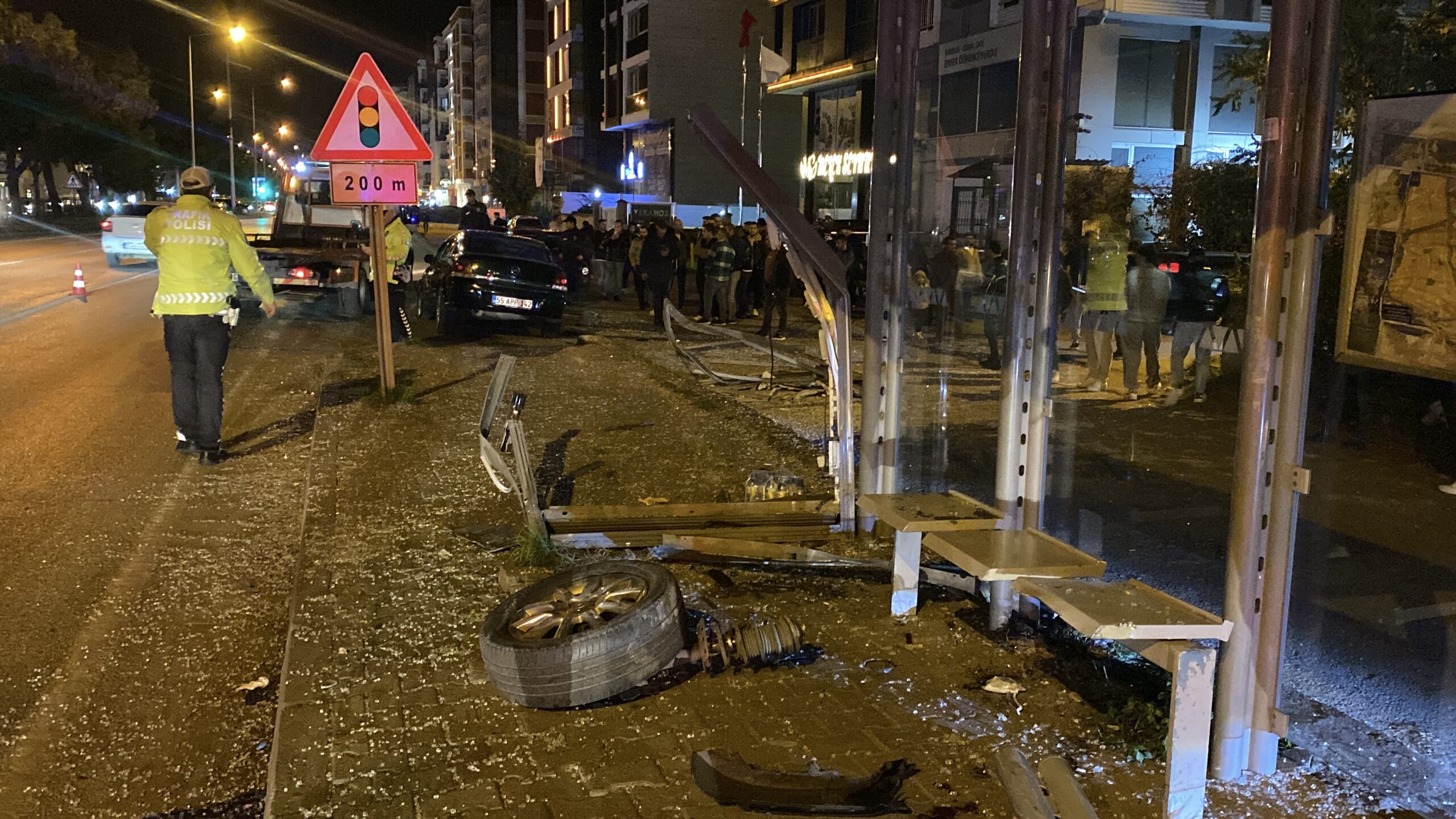 Otomobil, otobüs durağına daldı; 3 üniversite öğrencisi yaralandı