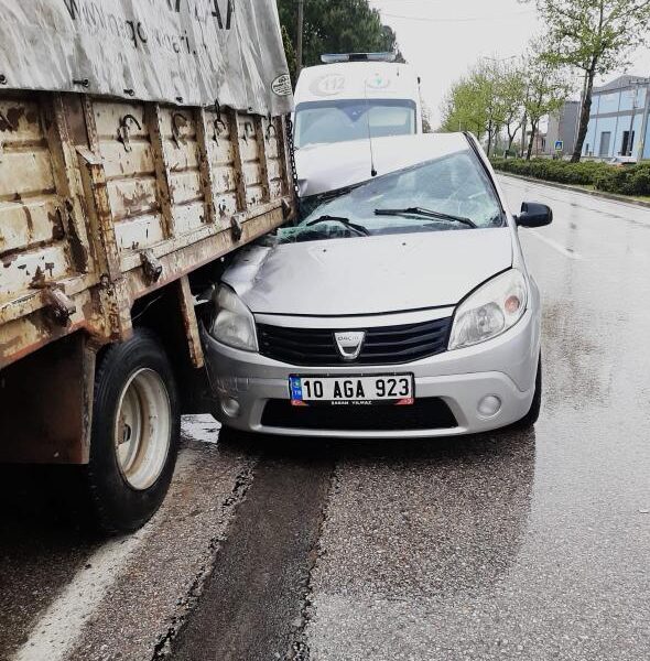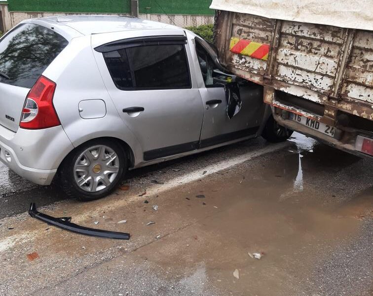 Kaza, saat 12.30 sıralarında, kırsal Yeniceköy Mahallesi Fatih Sultan Mehmet Bulvarında meydana geldi. Yağış nedeniyle kayganlaşan yolda Şaban Y.nin direksiyon kontrolünü yitirdiği 10 AGA 923 plakalı otomobil, yol kenarında park halindeki 16 KMD 24 plakalı kamyona arkadan çarptı. Yaralanan sürücü Şaban Y., ihbar üzerine olay yerine sevk edilen ambulansla kaldırıldığı İnegöl Devlet Hastanesi’nde tedaviye alındı.