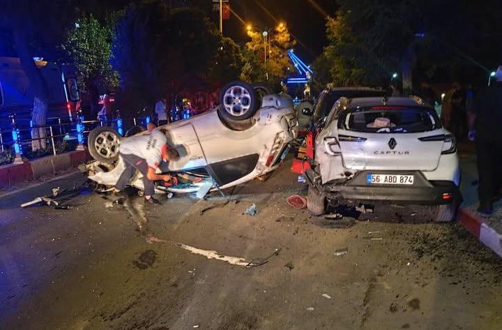 Kaza, dün gece saatlerinde Karayolları Şube Müdürlüğü önünde meydana geldi. M.H.K.nin (26) direksiyon hakimiyetini kaybettiği 15 AAH 086 plakalı otomobil, refüje çarpıp takla attıktan sonra park halindeki 56 ABD 874 plakalı otomobile çarptı. Kazada, ters dönen otomobilin sürücüsü M.H.K ile yanındaki M.V.S. (20), D.Ç. (21), M.E. (17) ve B.C. (20) yaralandı. İhbarla kaza yerine sağlık, itfaiye ve polis ekipleri sevk edildi. İtfaiye ekipleri tarafından araçtan çıkarılan yaralılar, sağlık ekiplerine teslim edilerek Siirt Eğitim ve Araştırma Hastanesi’ne kaldırıldı. Yaralılardan 2’sinin hayati tehlikesinin olduğu belirtildi.