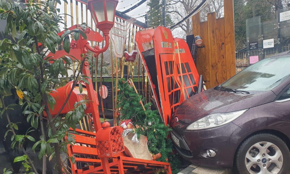 • Karabük’ün Safranbolu ilçesinde kontrolden çıkan otomobil, restoranın önündeki çitlere çarparken o anlar kameralara yansıdı. Fotoğraf: Karabük,(DHA)