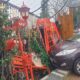 Otomobil, restoranın çitlerine çarptı; o anlar kamerada