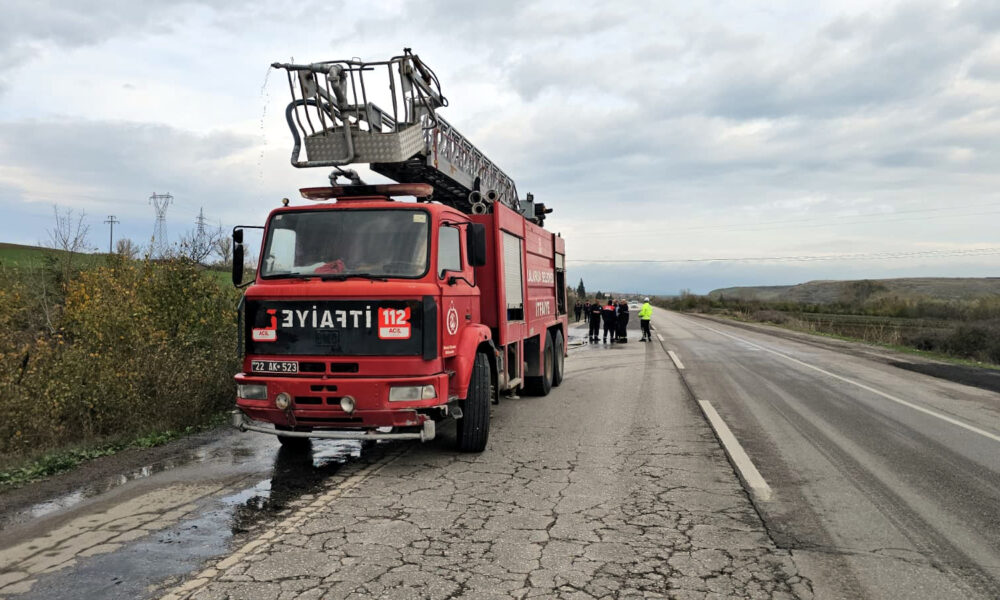 Olay, saat 14.00 sıralarında Edirne-Lalapaşa D-100 kara yolunda Sinanköy sapağı yakınlarında meydana geldi. Mehmet Gündoğanın kullandığı 22 ACJ 836 plakalı otomobil, motor kısmından alev aldı. Otomobili yolun kenarına çeken Gündoğan, durumu 112 Acil Çağrı Merkezine bildirdi. İhbarla bölgeye itfaiye, polis ve jandarma ekipleri sevk edildi. İtfaiyenin müdahalesiyle alevler söndürüldü. Otomobil, kullanılamaz hale geldi.