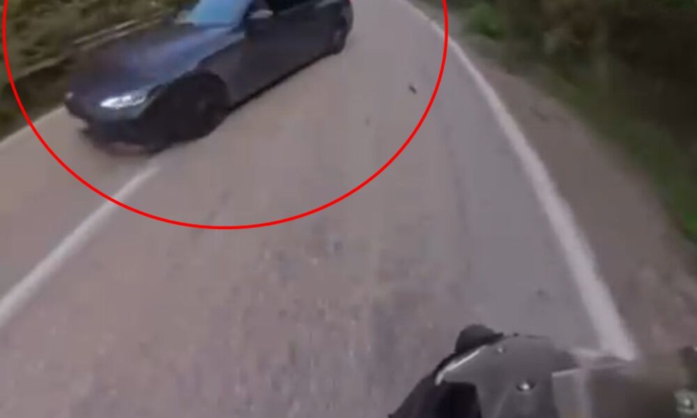Otomobil sürücüsü virajda drift attı, motosikletli kazayı kıl payı atlattı