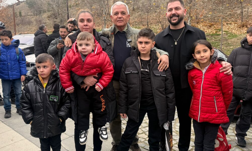 • Anne Bahar Düz (Solda) ve çocukları ile Mamak Belediye Başkanı Veli Gündüz Şahin (Ortada), kuaför Yasin Kirazlı (Sağda) Fotoğraf: Ankara, (DHA)