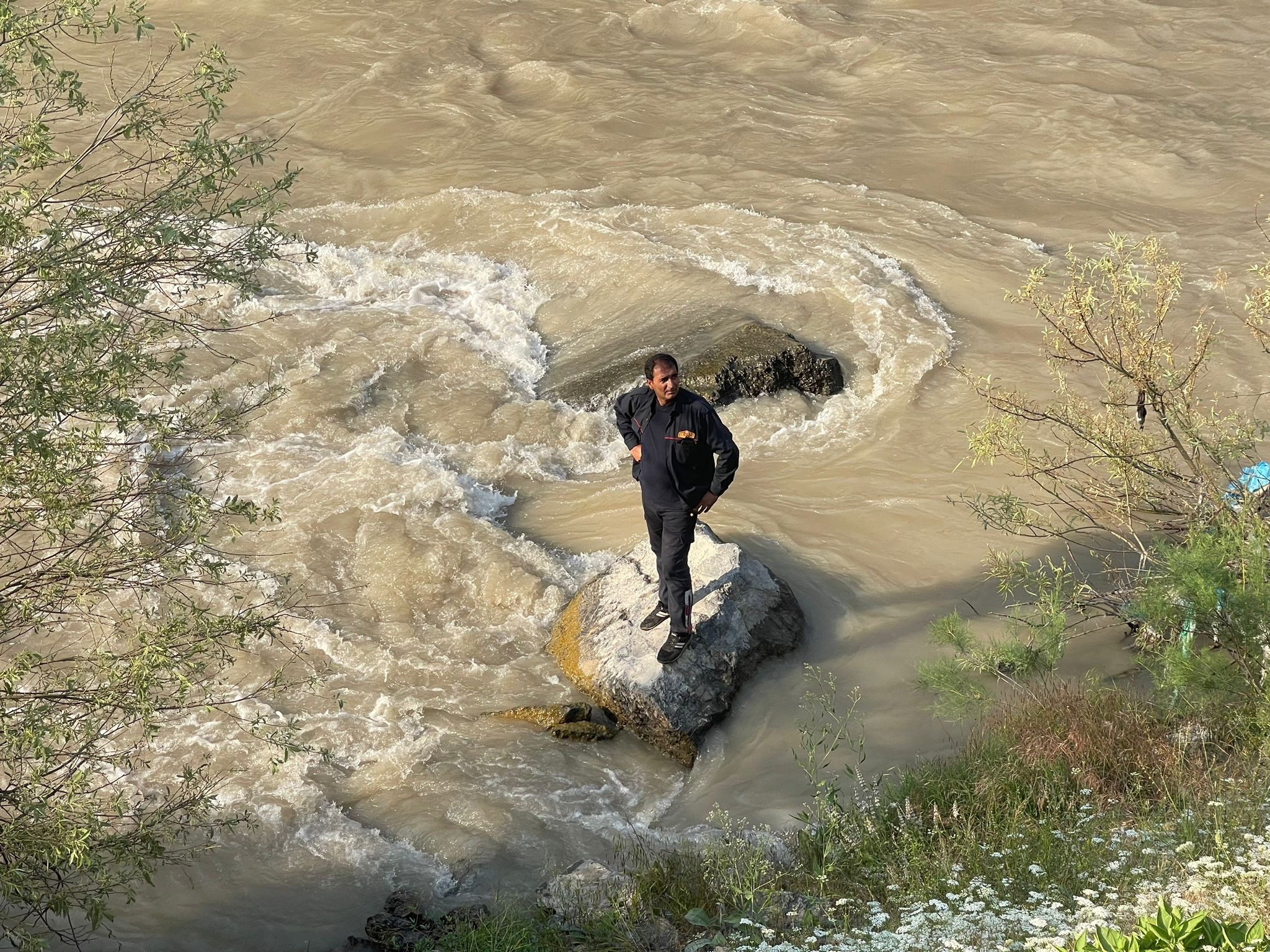 • HAKKARİ-Çukurca kara yolundan Zap Suyu'na düşen otomobildeki sürücü Cihat Yıldız (31) ile eşi Ayşe Koç Yıldız (30), çevredekiler tarafından yaralı olarak kurtarıldı. Fotoğraf: Mehmet ÖZKAN/Hakkari,(DHA)