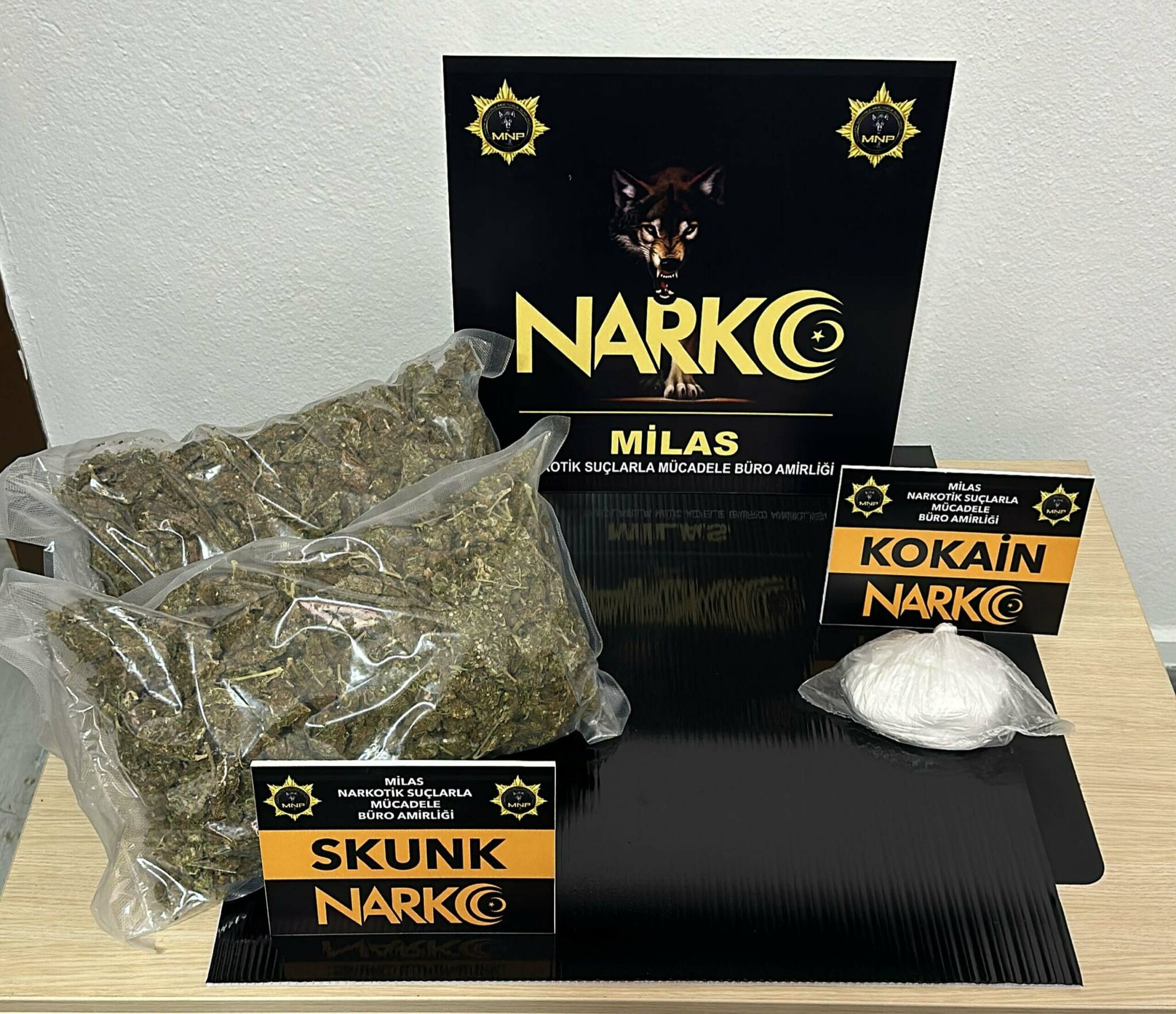 Muğla İl Emniyet Müdürlüğü Narkotik Suçlarla Mücadele Şube Müdürlüğü ekipleri, 26 Nisan günü Milas’a şehir dışından uyuşturucu getirileceği bilgisini aldı. Harekete geçen ekipler, ilçe girişinde şüpheli aracı durdurdu. Otomobilde, narkotik köpeğinin de kullanıldığı aramada 2 kilo 50 gram skunk ve 202 gram kokain ele geçirildi. Ekipler, Faruk Adnan Ö.(49), Abdülkadir B. (38), Yılmaz Y. (57), Kabıra R. (56) ve Mehmet G.’yi (39) gözaltına aldı. Emniyetteki işlemleri tamamlanan şüpheliler, sevk edildiği adliyede çıkarıldıkları mahkeme tutuklandı.