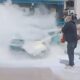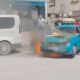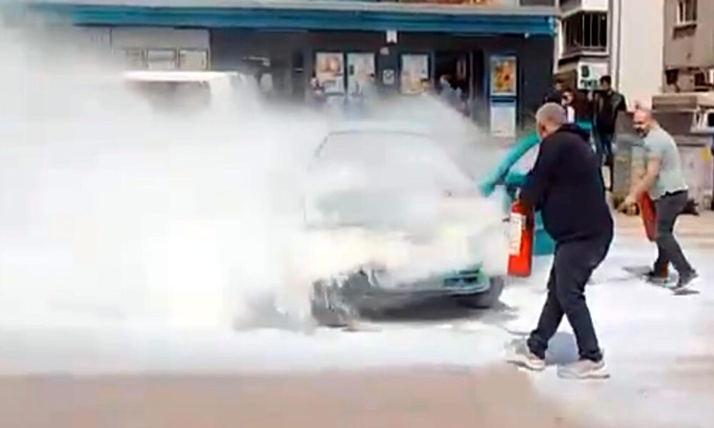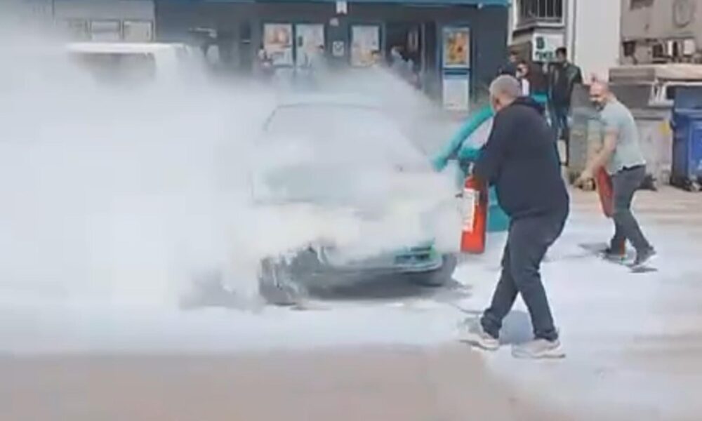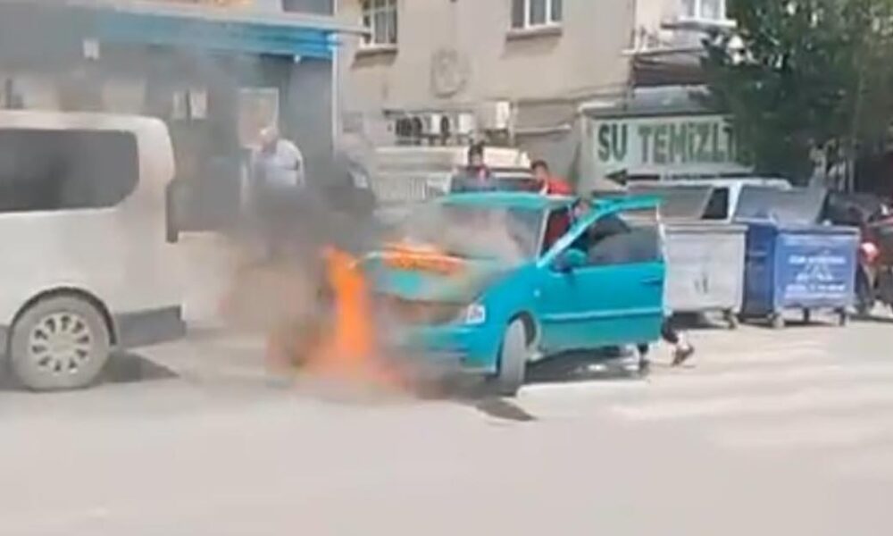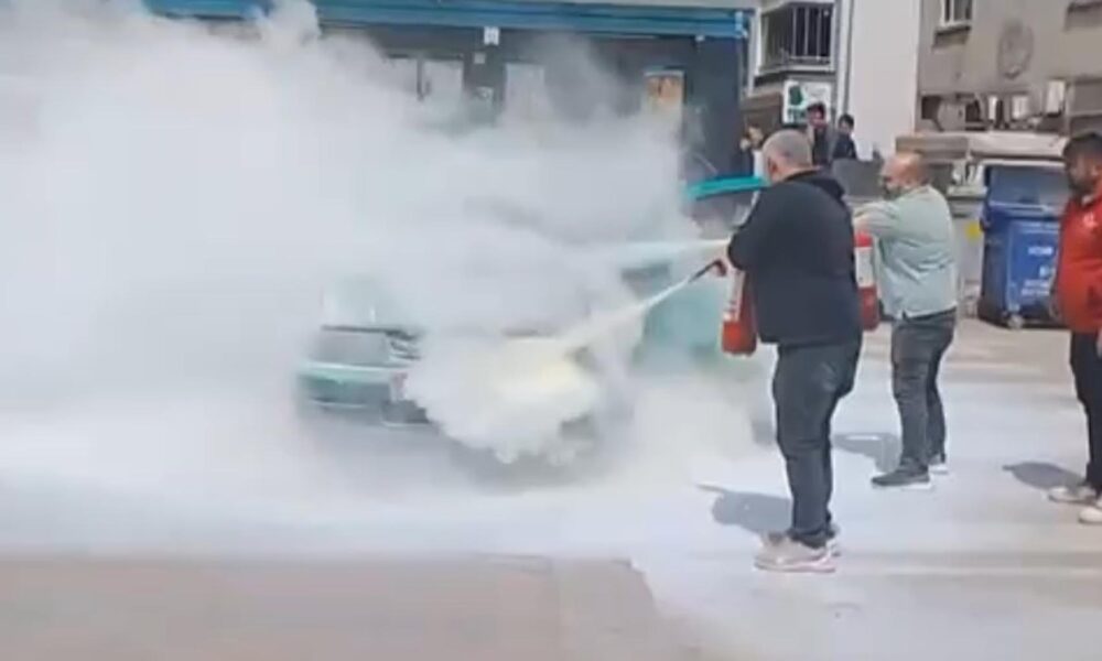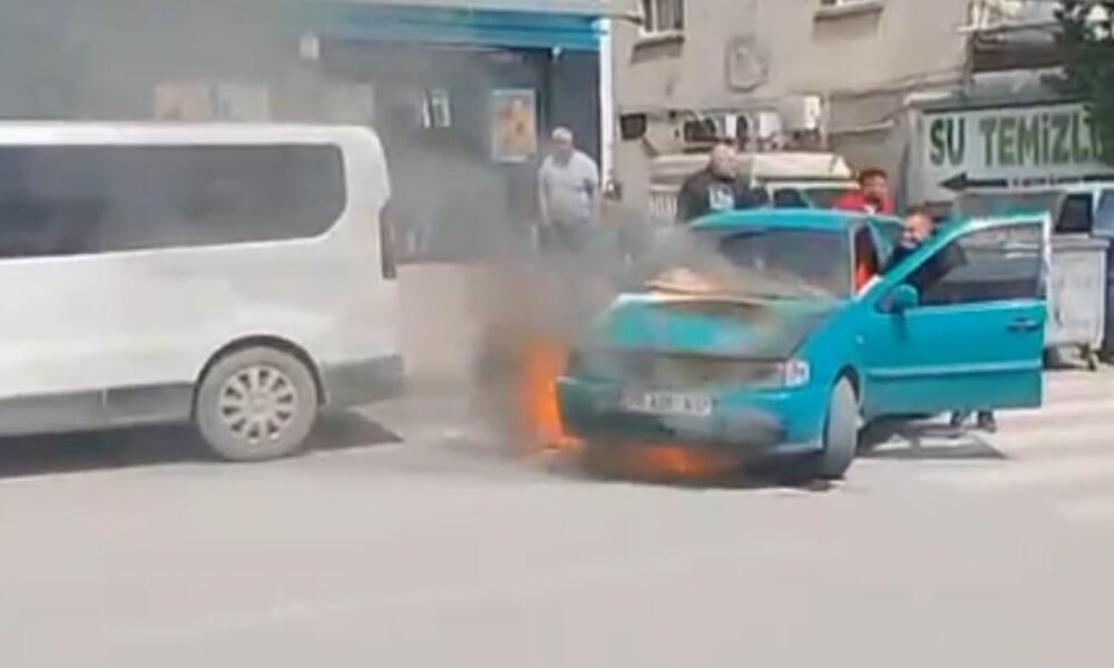 Otomobildeki yangına ilk müdahaleyi çevredekiler yaptı