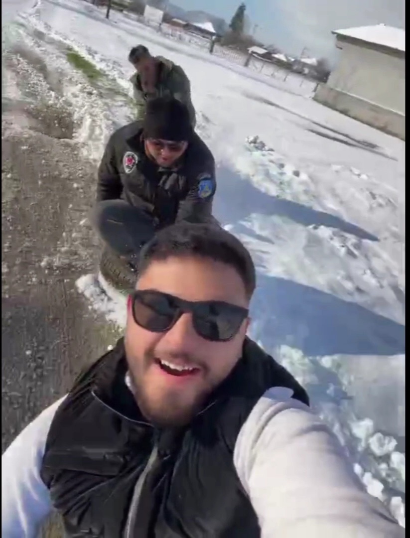 Düzce kent merkezinde kar yağışı etkili oldu. Bazı vatandaşlar, karın keyfini çıkardı. Oto sanayi esnafı, bir otomobilin arkasına bağlanan koltuğa oturup sanayi sitesini gezdi. Bazı vatandaşlar da otomobilin arkasına bağladıkları şambrel ve lastiklerde şehir turu yaptı. Eğlenceli anlar cep telefonuyla görüntülendi.