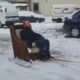 Otomobile bağladığı koltukla kayak yaptı