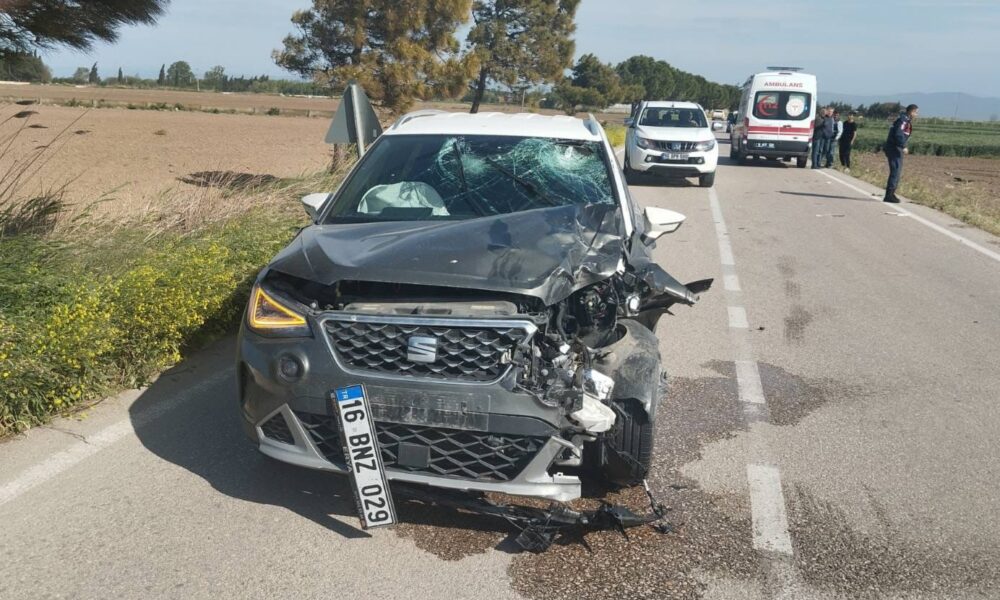 • Bursa’nın Karacabey ilçesinde, otomobile çarpan motosikletin sürücüsü Umut Koç (28) hayatını kaybetti. Fotoğraf: Bursa, (DHA)