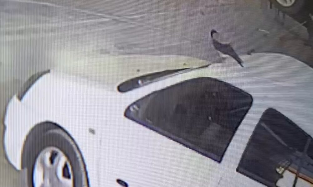 Otomobile konan karga, kaputtaki anahtarı aldı