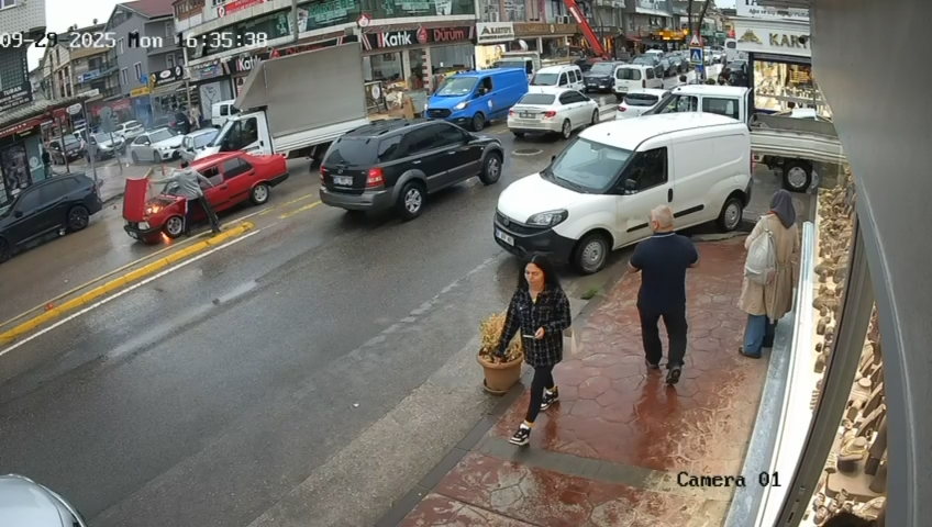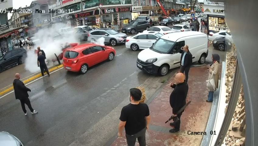 Olay anı bir iş yerinin güvenlik kamerasına yansıdı.