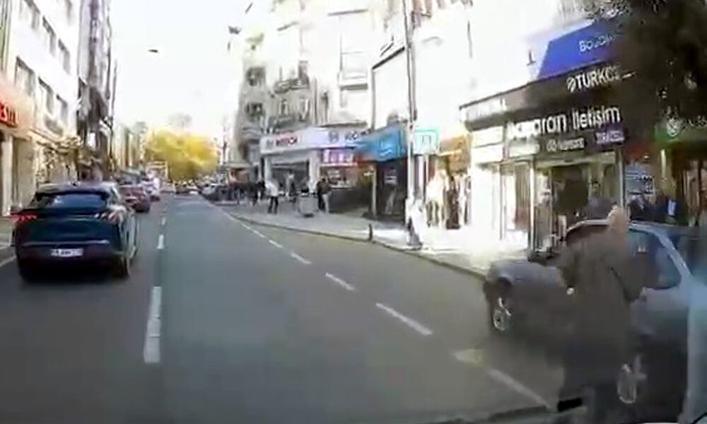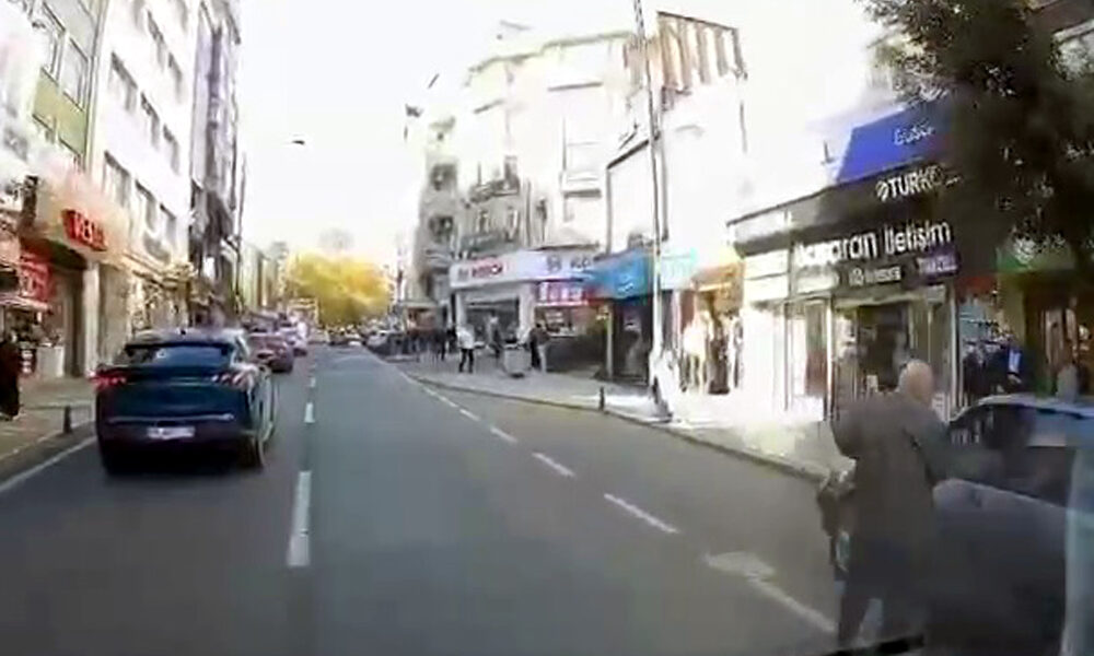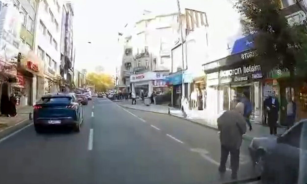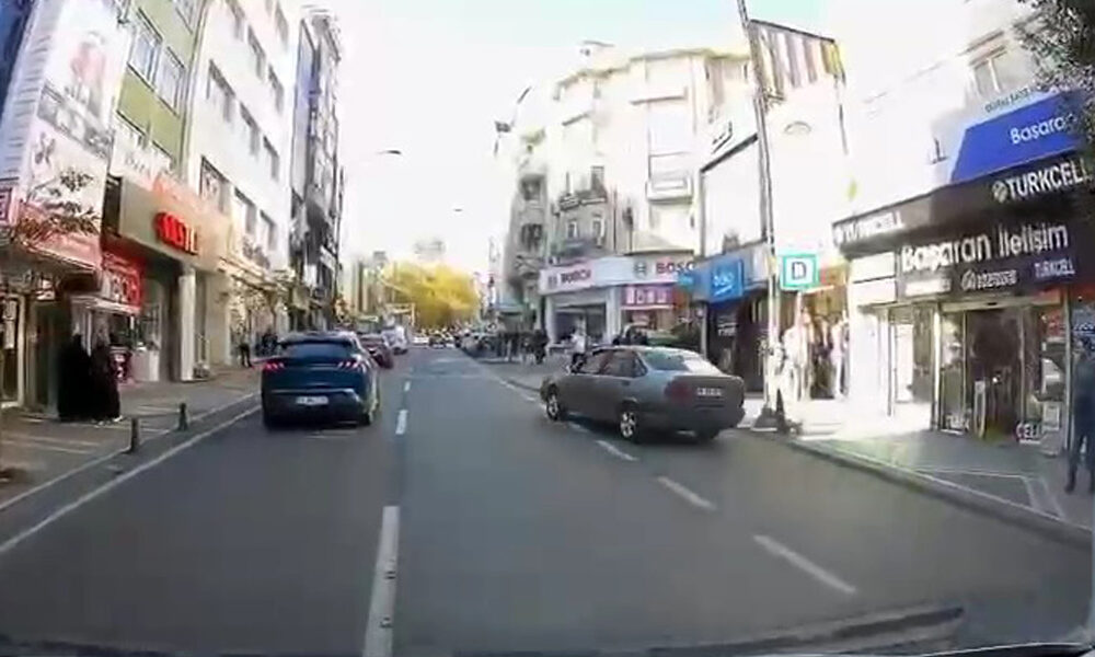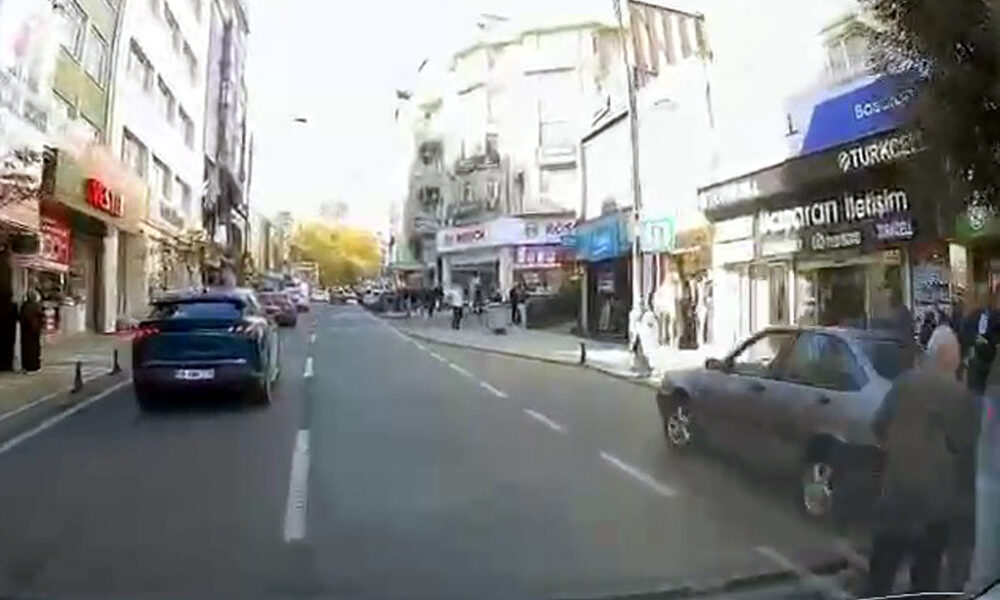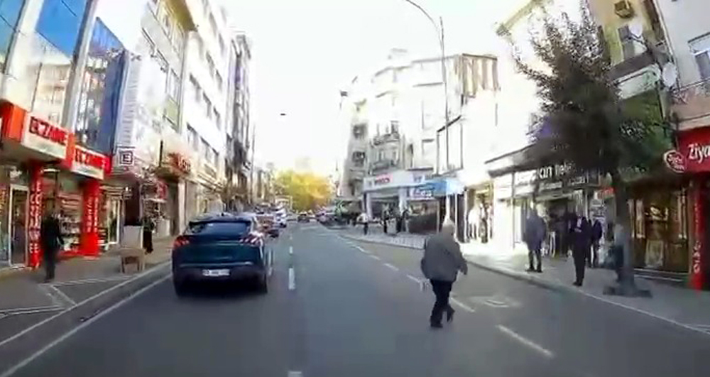 Hükümet Caddesi’nde otomobiliyle seyir halinde olan A.K., aşırı hız yapıp, makas atmaya başladı. Bu sırada yolun karşısına geçmek isteyen kişiyi son anda fark eden A.K. otomobilin direksiyonunu sağa kırdı. Yaya, ezilmekten son anda kurtulurken, o anlar başka bir aracın kamerasına yansıdı.