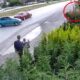 • Düzce'de, D-100 kara yolunda, yol kenarından yürüyen çocuğun, kontrolden çıkıp kayarak gelen otomobilin çarpmasından son anda kurtulduğu anlar kameraya yansıdı. Fotoğraf: Düzce,(DHA)