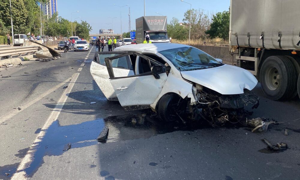 Otomobilin bariyere çarptığı kaza kamerada: 3 yaralı