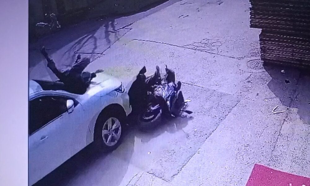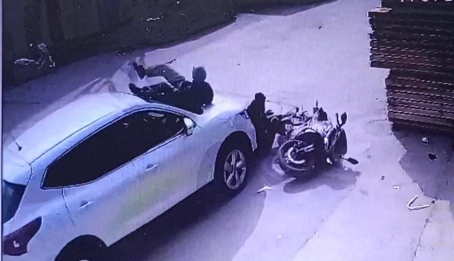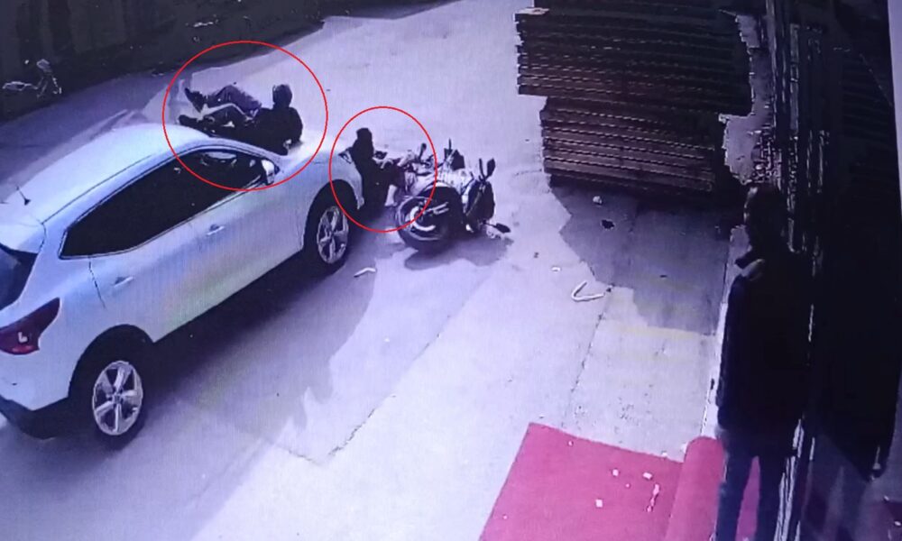 Öte yandan kaza, bir iş yerinin güvenlik kamerasına yansıdı. Görüntülerde otomobilin çarptığı motosikletin sürüklendiği, sürücü yere düşerken, otomobilin ön kaputunun üstüne düşen yolcunun, ayağa kalkıp olay yerinden uzaklaştığı görüldü. Yaralanan motosiklet sürücüsünün, olayın şokuyla bir iş yerinin önüne oturduğu anlar da görüntülere yansıdı.