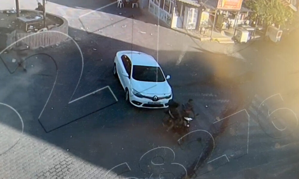 Otomobilin çarptığı motosikletlinin ağır yaralandığı kaza kamerada
