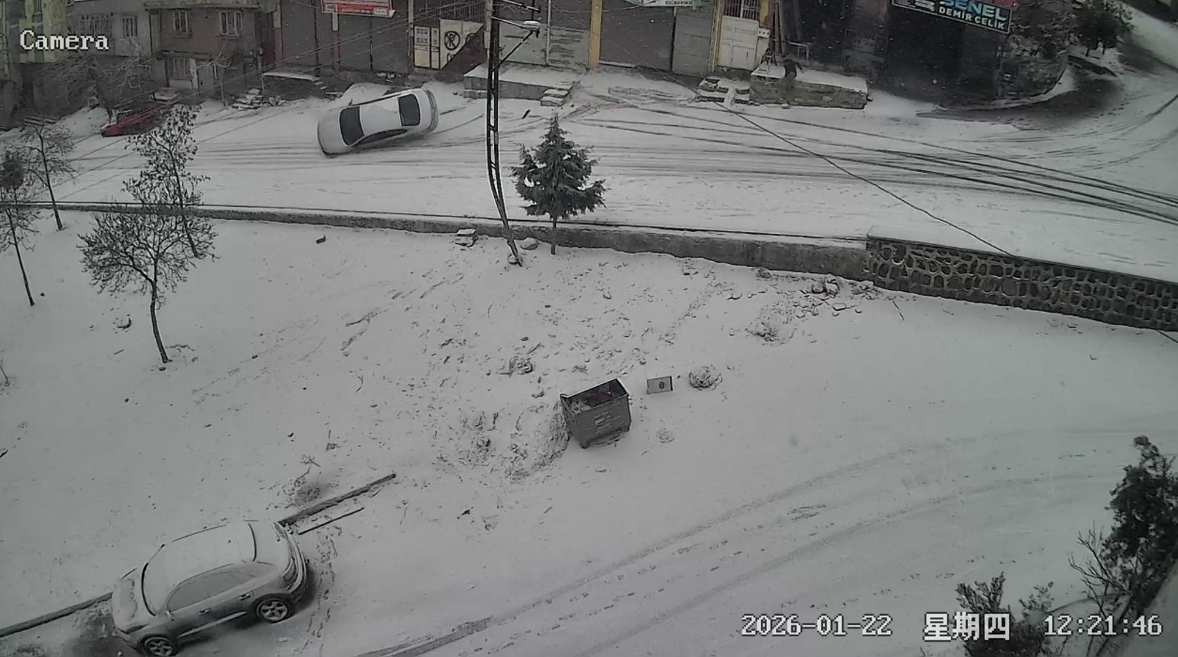 • Gaziantep'te yoğun kar yağışı nedeniyle kayganlaşan yolda duvara çarpıp devrilen otomobilin sürücüsü yaralandı. Kaza anı güvenlik kamerasına yansıdı. Fotoğraf: Gaziantep,(DHA)