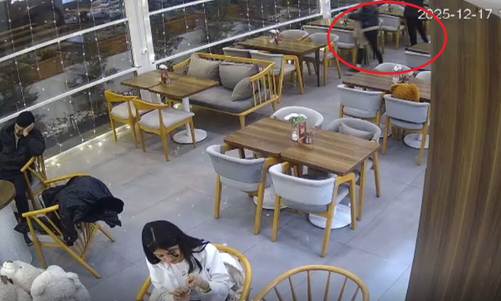 Öte yandan kaza, iş yerinin güvenlik kamerasına yansıdı. Görüntülerde otomobilin kafeye girdiği ve oturmak üzere olan 2 kişinin kazayı son anda atlattıkları görüldü.