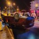 Öte yandan kaza güvenlik kamerasına da yansıdı. Görüntülerde, süratle gelen otomobilin, önünde ilerleyen minibüse çarptığı görüldü.