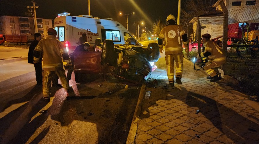 Kaza, saat 06.00 sıralarında Sanayi Camii ışıkları mevkisinde meydana geldi. İlçe merkezine doğru giden Erhan İğneci’nin kullandığı 16 PU 058 otomobil, önündeki E.K. idaresindeki 16 EHU 57 plakalı panelvan minibüse yandan çarptı. Savrulan otomobil takla atarken, minibüs ise sinyalizasyon direğine çarptı. Sinyalizasyon direği minibüsün üzerine devrildi. Kazada sürücüler ile otomobildeki E.D. yaralandı. Çevredekilerin ihbarı üzerine kaza yerine itfaiye, polis ve sağlık ekipleri sevk edildi. Otomobilde sıkışan 2 kişi itfaiye ekipleri tarafından çıkarılıp, sağlık ekiplerine teslim edildi. Ekiplerin ilk müdahalesinin ardından yaralılar ambulanslarla Mustafakemalpaşa Devlet Hastanesi’ne kaldırıldı. Yaralılardan durumu ağır olan otomobil sürücüsü Erhan İğneci, Bursa Uludağ üniversitesi Hastanesi’ne sevk edildi.