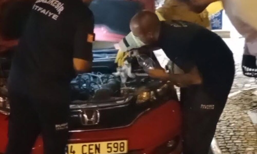 Ayvalıkta dün saat 20.30 sıralarında bir otoparkta park halindeki 34 CEN 598 plakalı otomobilin motoruna yavru kedi girdi. Sürücü durumu yola çıktıktan kısa bir süre sonra fark edip, Atatürk Bulvarında otomobilini yol kenarına çekti. Yavru kediyi bulunduğu yerden çıkarmaya çalışan, ancak başarılı olamayan sürücü 112 Acil Çağrı Merkezini arayıp, yardım istedi. İhbar üzerine Haşim Ceylan, Hüseyin Sayar ve Tolunay İnlafoğlundan oluşan 3 kişilik itfaiye ekibi olay yerine sevk edildi. İtfaiye ekibi, otomobilin motoruna sıkıştığı belirlenen kediyi, kurtarmak için çalışma başlattı. Otomobilin bulunduğu yerde trafiğin yoğun olması ve motorun aralarına eldivenle müdahalenin mümkün olmaması nedeniyle itfaiye ekibi kurtarma çalışmasında güçlük yaşadı. Yavru kedi, kendisini kurtarmaya çalışan itfaiye erinin elini tırmaladı. 20 dakikalık çaba sonucu bulunduğu yerden kurtarılan yavru kedi, sağlık durumunun iyi olduğunun tespiti üzerine doğal ortamına bırakıldı.