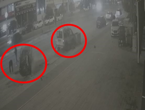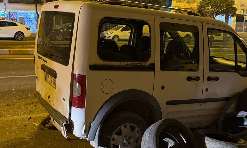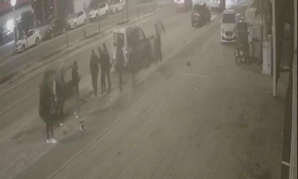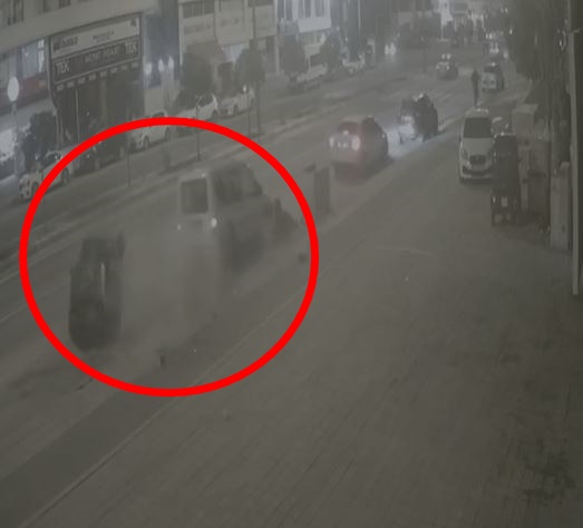 Kaza anı ise bir iş yerinin güvenlik kamerasına yansıdı. Görüntülerde, kontrolden çıkan otomobilin, park halindeki hafif ticari araca çarptığı ve ardından otomobilden 3 kişinin çıktığı görülüyor.