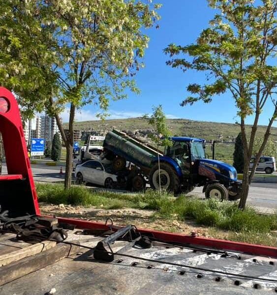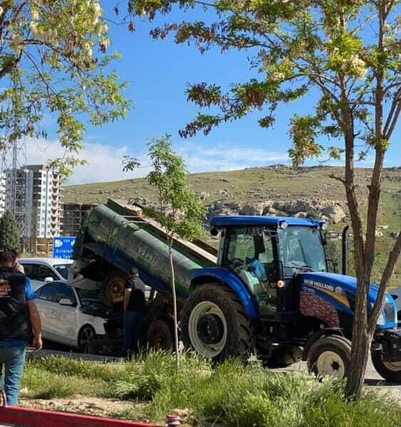 • Mardin'in Artuklu ilçesinde otomobilin traktöre bağlı su tankerinin altına girdiği kazanın güvenlik kamerası görüntüsü ortaya çıktı. Fotoğraf: Mardin, (DHA)