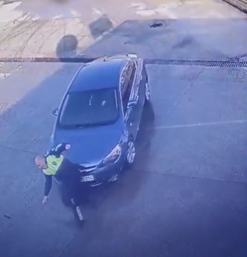 Kaza, Çarşamba ilçesi Sarıcalı Mahallesinde bulunan bir akaryakıt istasyonunda meydana geldi. Akaryakıt istasyonuna giriş yapan bir sürücünün kullandığı otomobil, bu sırada telefonla konuşan trafik polisine çarptı. Çarpmanın etkisiyle yere düşen polis memuru, kazayı yara almadan atlattı. Sürücüyü uyaran trafik polisi, şikayetçi olmadı. O anlar, akaryakıt istasyonunun güvenlik kamerasıyla kaydedildi.
