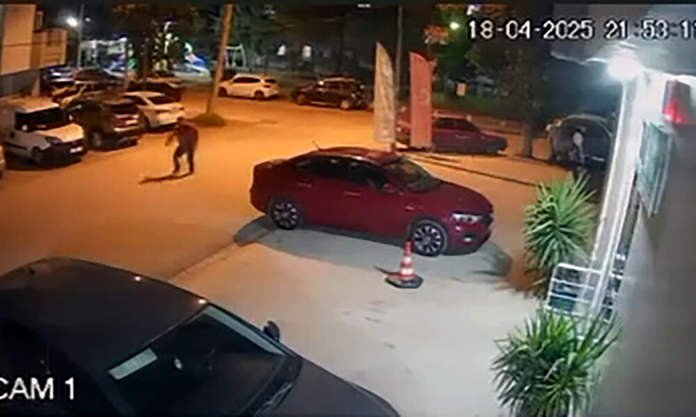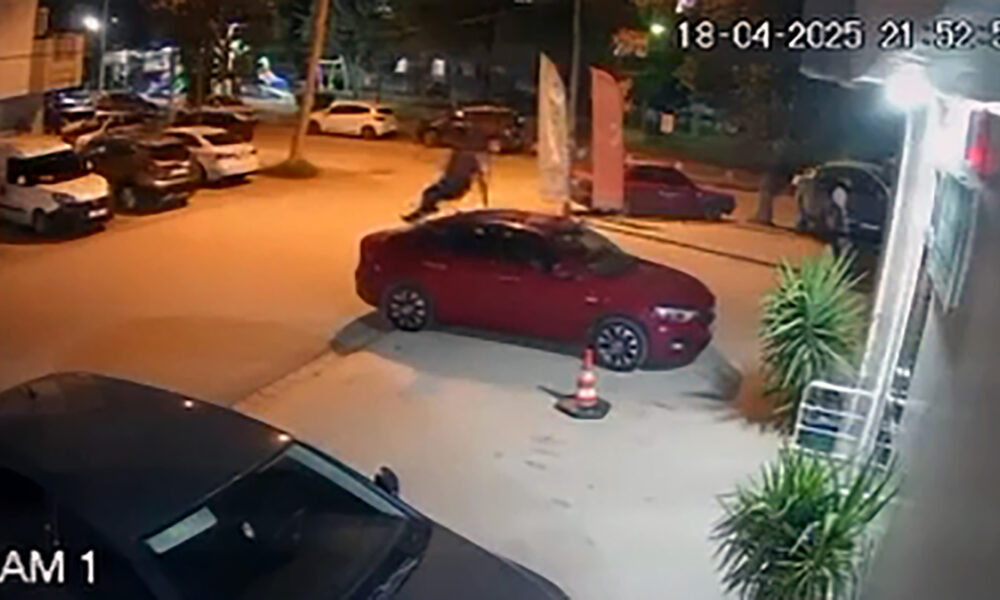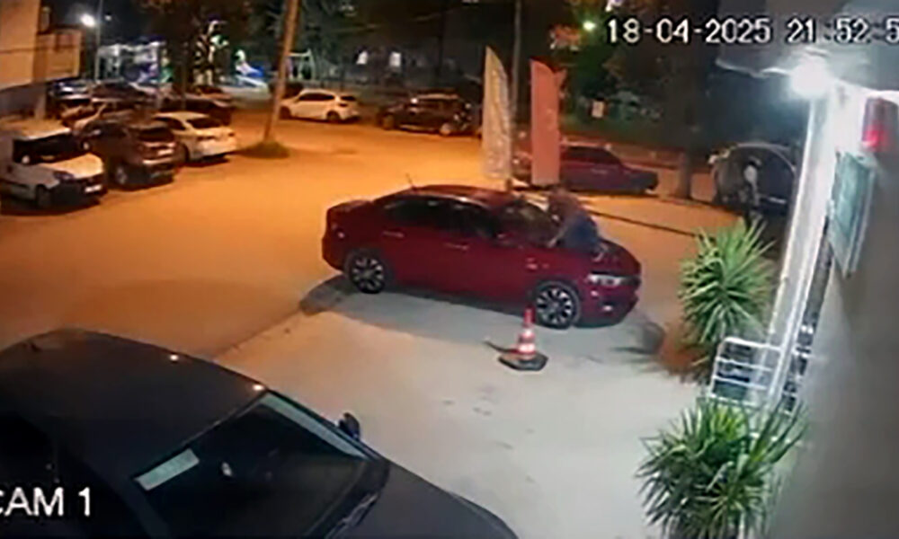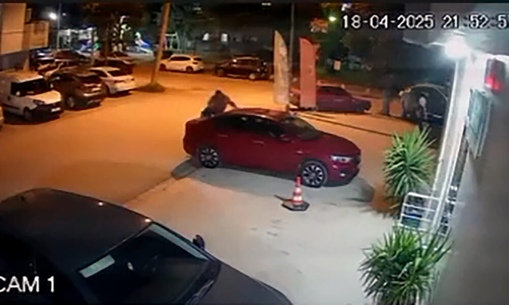 Otomobilin üzerinde zıplayıp, park halindeki araçlara zarar verdi