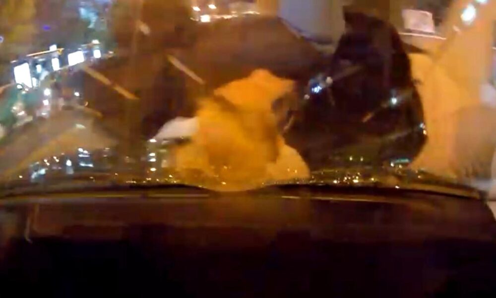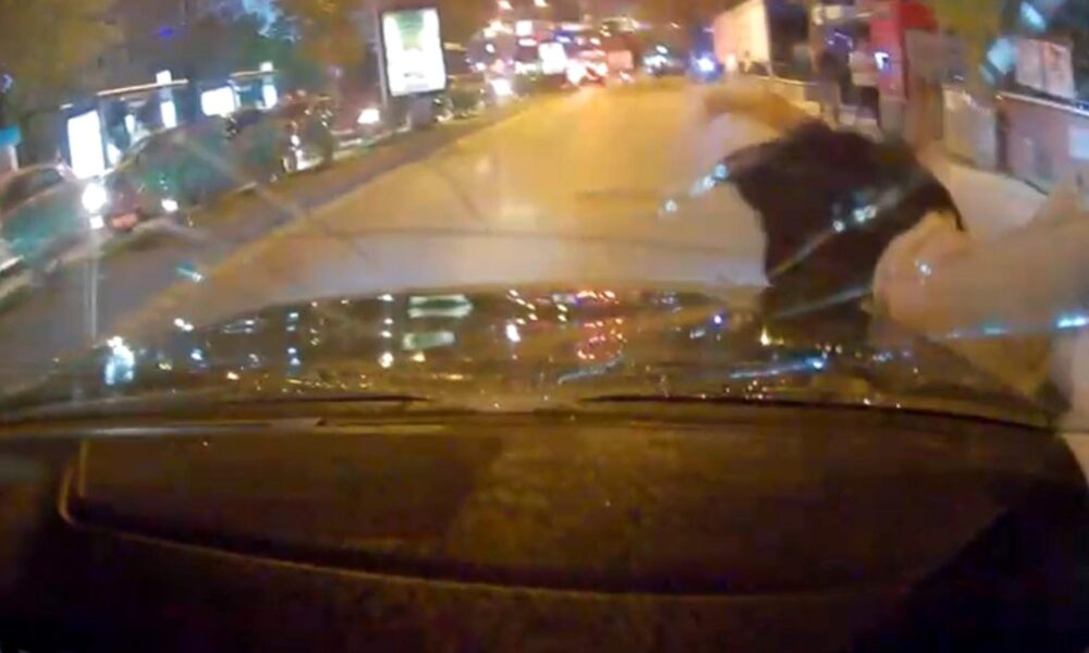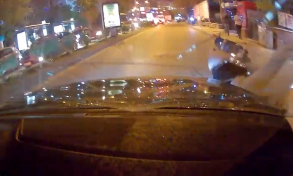 Kaza anı motosikletle çarpışan otomobilin araç kamerasına yansıdı.