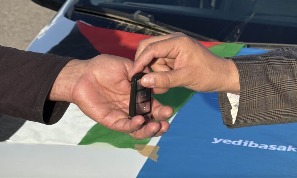 İsminin açıklanmasını istemeyen iş insanı, otomobilinin anahtarını Davet ve Kardeşlik Vakfı Midyat Başkanı Mehdi Ocaka teslim etti. Ocak da Gazzelilere ulaştırılması için otomobili Yedi Başak İnsani Yardım Derneği Mardin Şube Başkanı Mecit Taşa teslim etti. Satılıp, elde edilecek gelir Gazzeliere bağışlanacak. Otomobilin yaklaşık 1 milyon 100 bin TL değerinde olduğu belirtildi.