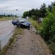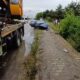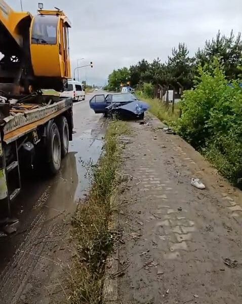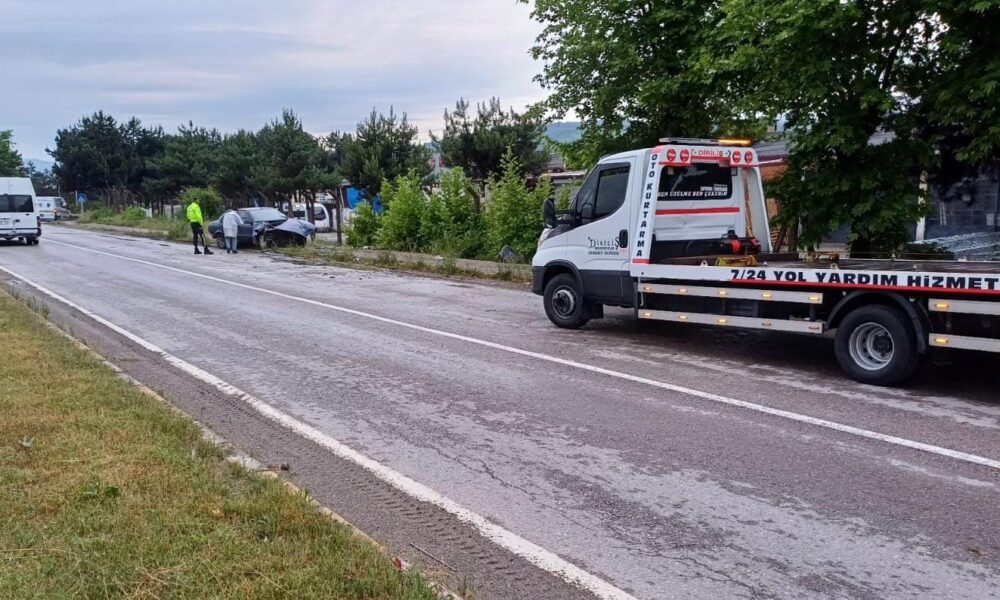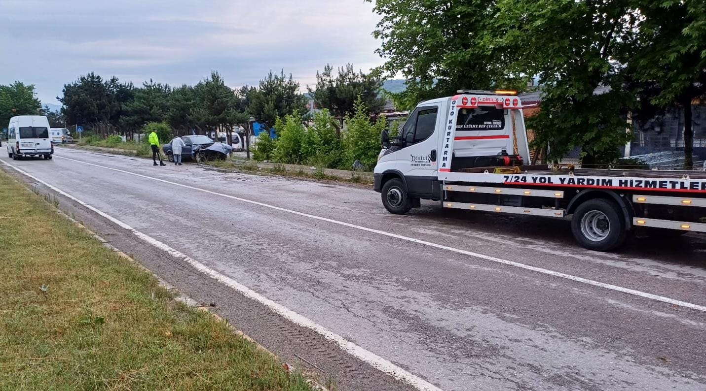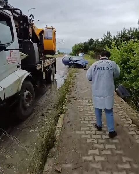 Otomobil vinç ve çekiciyle kaldırılırken, polisin kazayla ilgili incelemesi sürüyor.