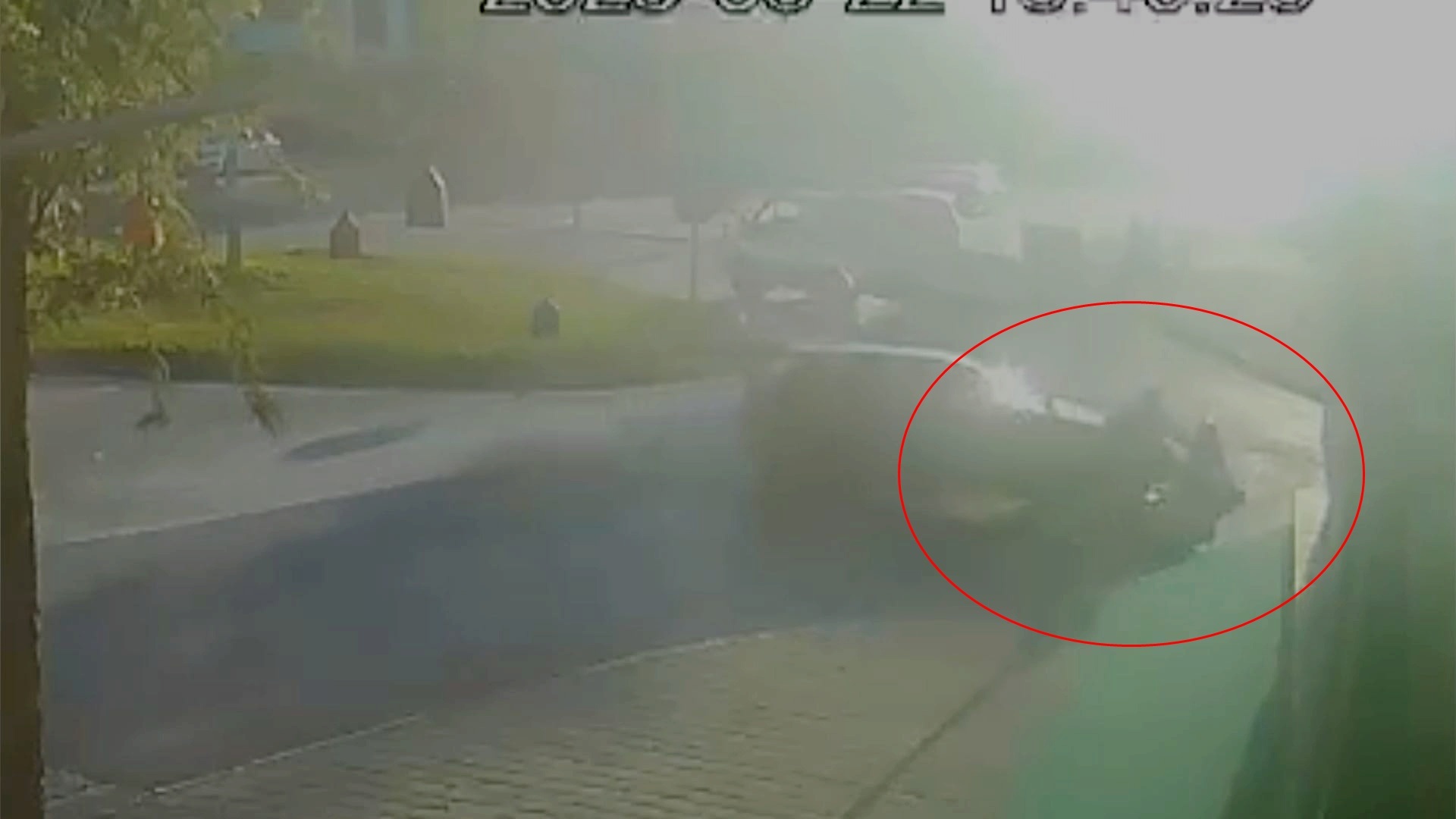 • Bursa’nın İnegöl ilçesinde otomobil ile çarpışan motosikletin sürücüsü yaralandı. Kaza anı bir iş yerinin güvenlik kamerasına yansıdı. Fotoğraf: Bursa, (DHA)
