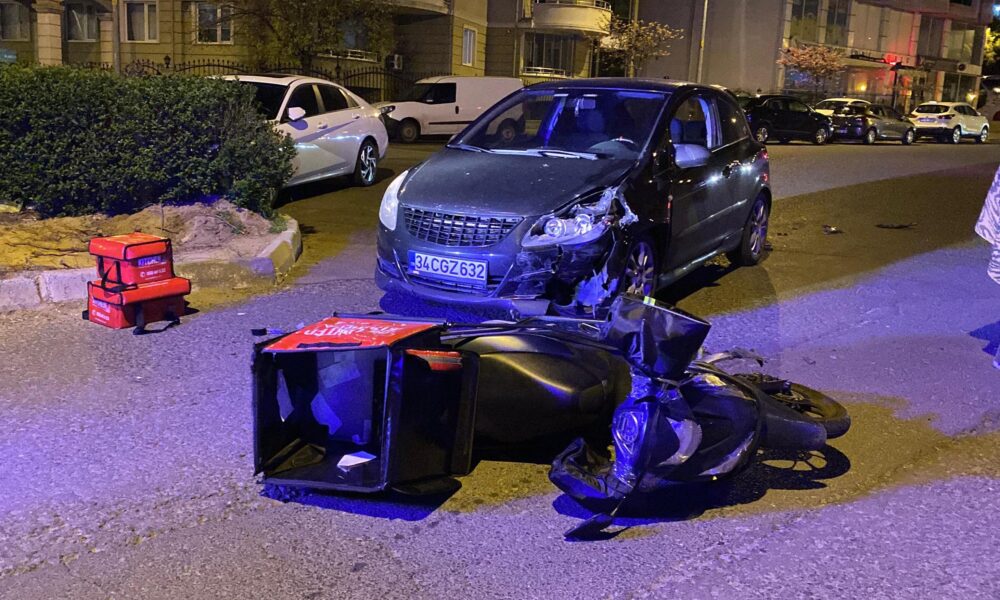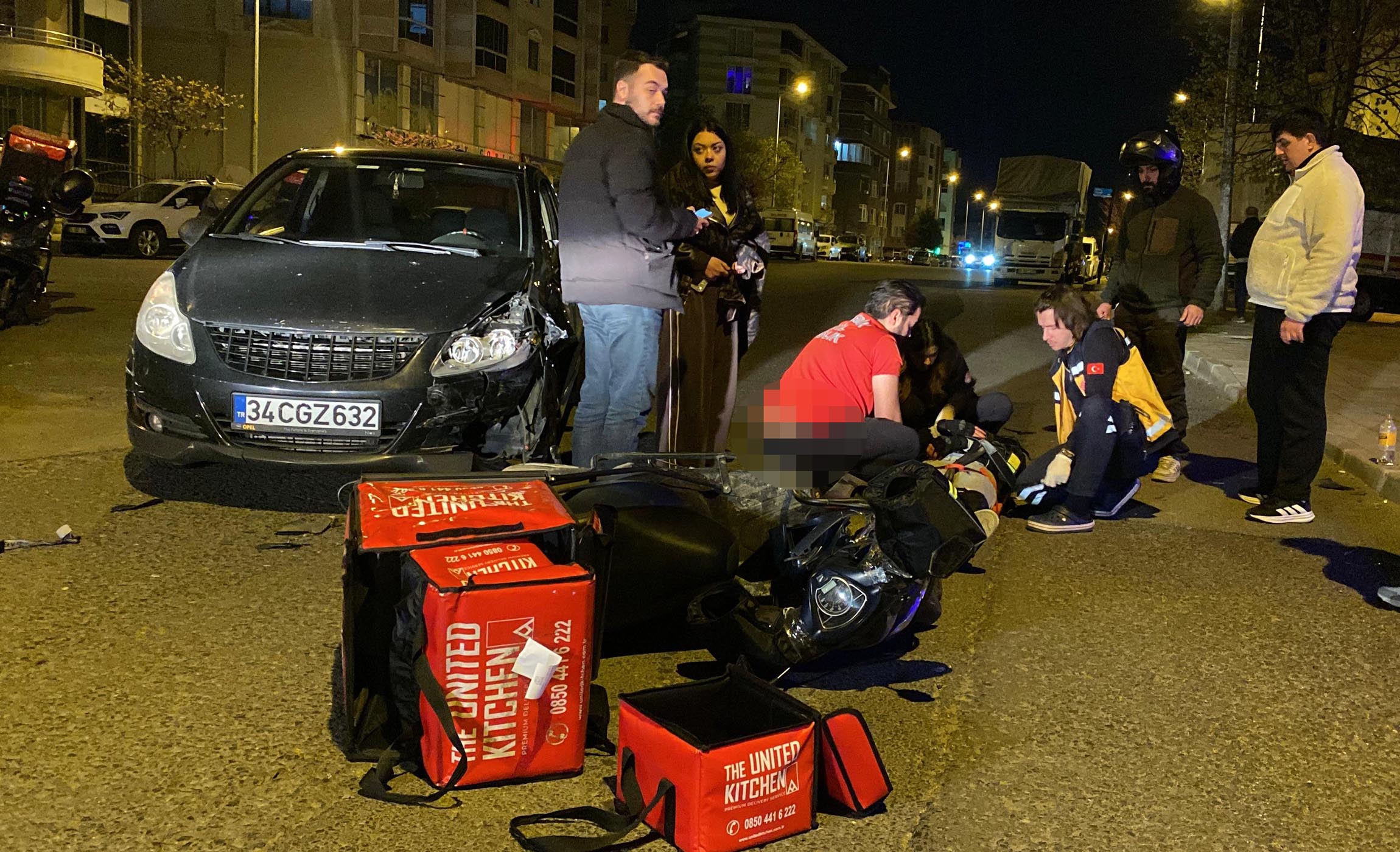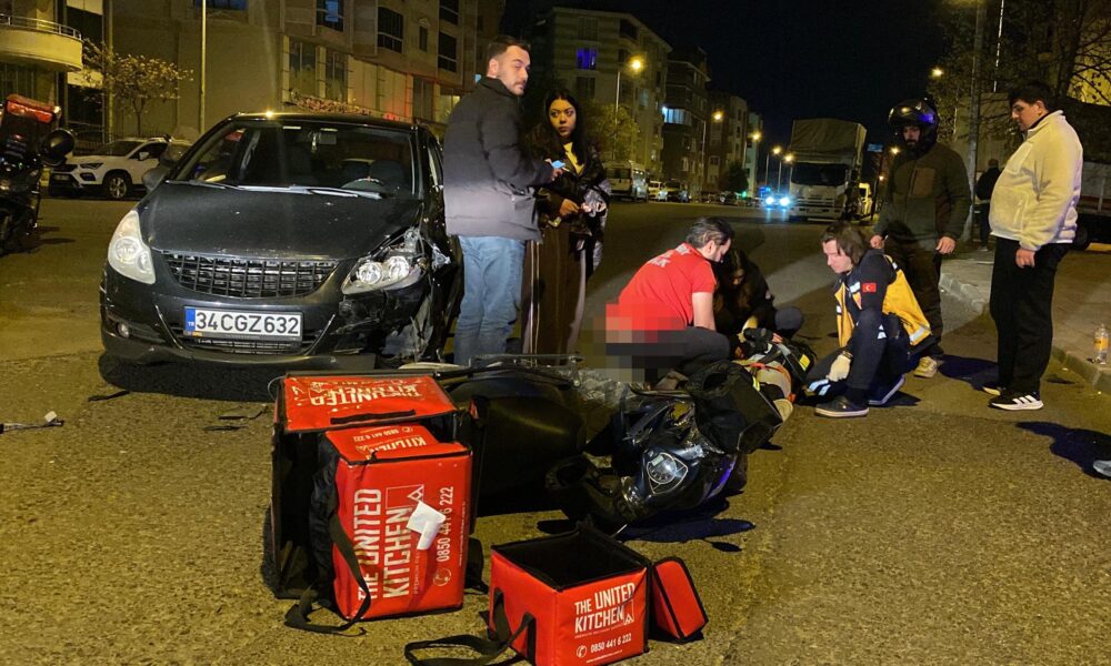 Otomobille çarpışan motosikletin sürücüsü kurye yaralandı