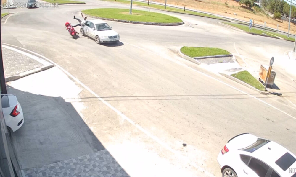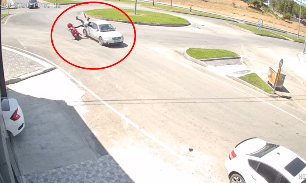Otomobille çarpışan motosikletin sürücüsünün yaralandığı kaza kamerada