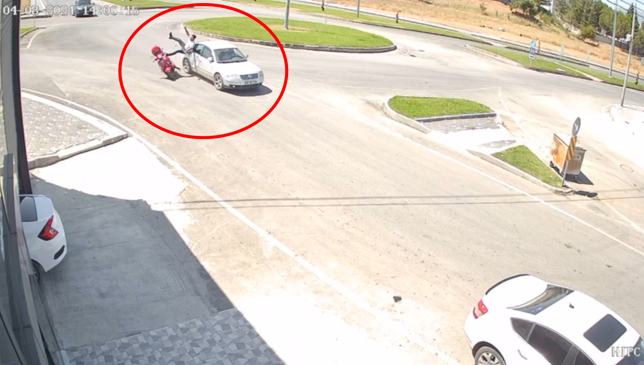 Kaza, saat 14.00 sıralarında Yavuz Sultan Selim Mahallesi Erbaa Devlet Hastanesi kavşağında meydana geldi. Güvercin Sokaktan Recep Tayyip Erdoğan Bulvarına seyreden İbrahim Deveci yönetimindeki 60 AFV 544 plakalı motosiklet, Dr. Fahrettin Koca Bulvarından kavşağa giren Harun Türkyılmaz yönetimindeki 06 KB 2306 plakalı otomobille çarpıştı. Kazada motosiklet sürücüsü yaralandı. İhbarla olay yerine sağlık ve polis ekipleri sevk edildi. Yaralı motosiklet sürücüsü, ambulansla Erbaa Devlet Hastanesine kaldırıldı. Kaza, çevredeki bir iş yerinin güvenlik kamerasına anbean yansıdı.