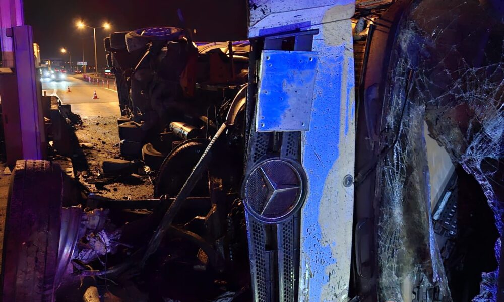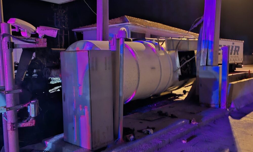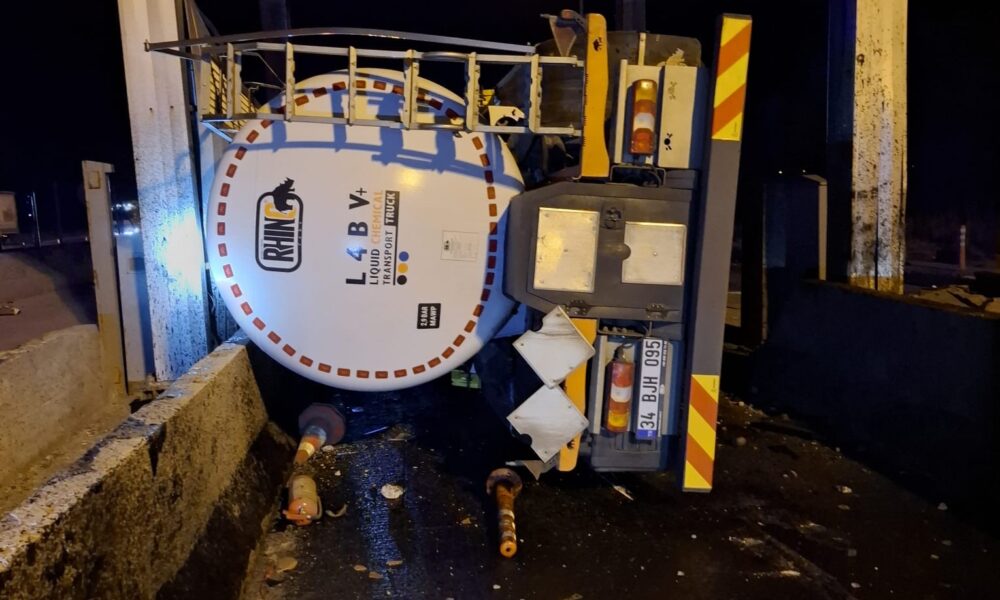 Otoyol gişelerine çarpan tankerin sürücüsü yaralandı