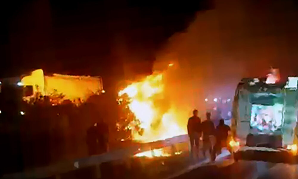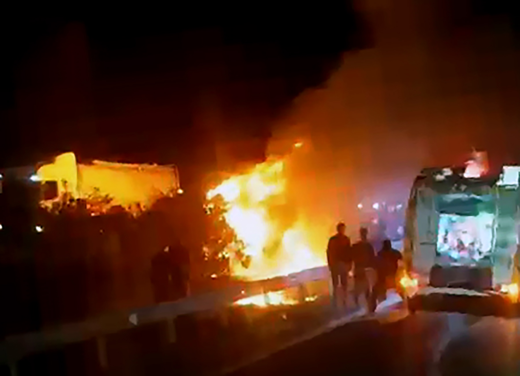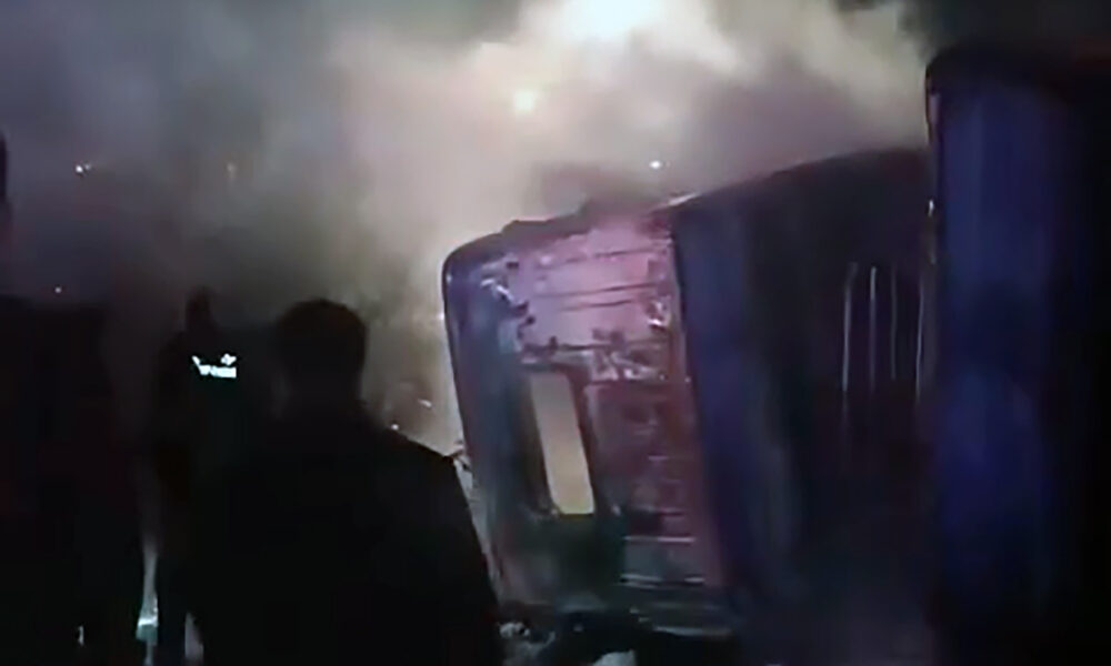 Otoyolda devrilip yanan TIR’daki 2 kişi öldü; alevlerden kaçan anguslar kamerada