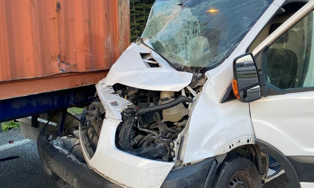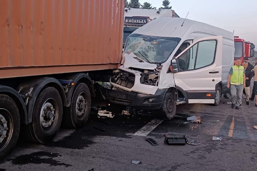 Otoyolda minibüs, otomobil ile 2 TIR’a çarptı