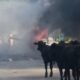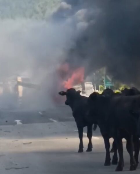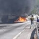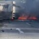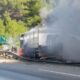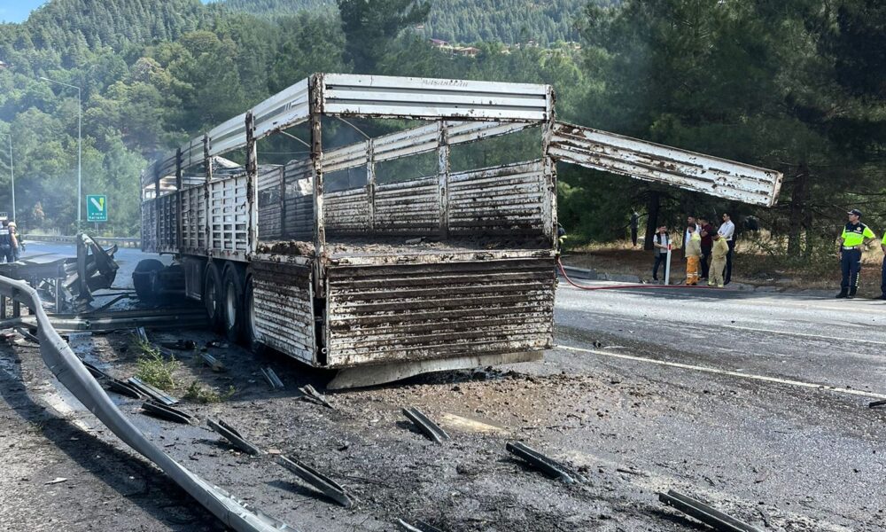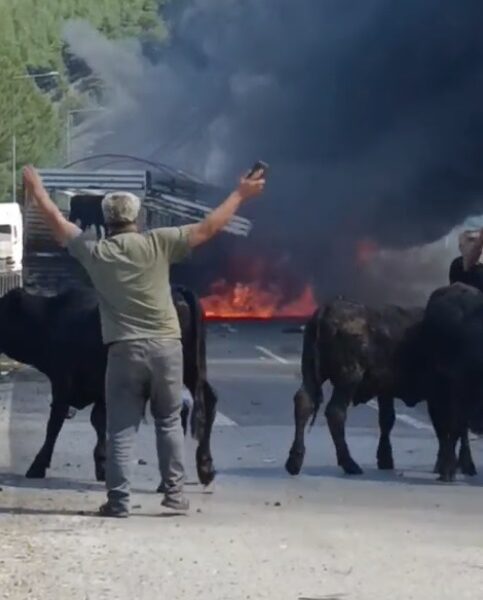 Otoyolda TIR yandı, dorsedeki hayvanları sürücü kurtardı