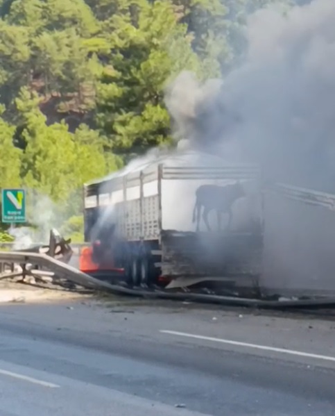 Tarsus-Adana-Pozantı Otoyolu Akçatekir mevkisinde seyreden, sürücüsünün ismi öğrenilemeyen 63 ADE 887 plakalı büyükbaş yüklü TIR’da bilinmeyen nedenle yangın çıktı. Alevleri fark eden sürücü, TIRı durdurup 112 Acil Çağrı Merkezi’nden yardım istedi. Dorsenin kapağını açan şoför, hayvanları tahliye etti. İhbarla bölgeye itfaiye, sağlık ve polis ekipleri sevk edildi. Yangın nedeniyle Ankara yönünde trafik ulaşıma kapatıldı. Otoyolda metrelerce araç kuyruğu oluştu. İtfaiyecilerin yangını söndürmesinin ardından otoyolda ulaşım yeniden açıldı.