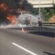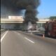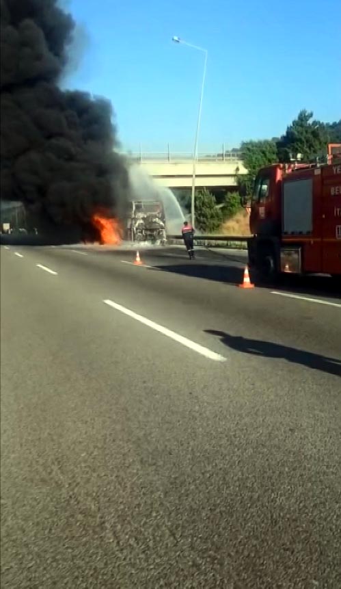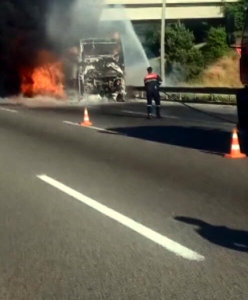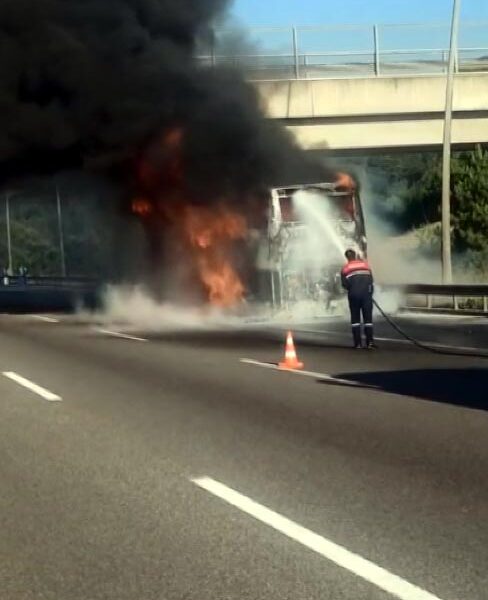 Otoyolda yanan otobüs kullanılamaz hale geldi