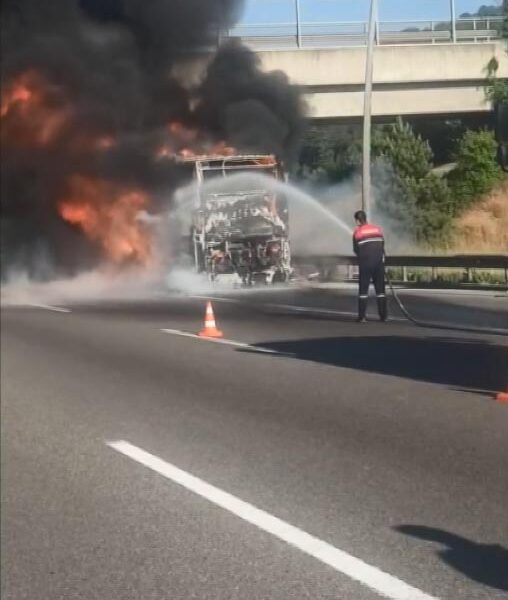 Anadolu Otoyolunun Köroğlu Rampaları mevkisinde İstanbul yönüne giden yolcu otobüsünde, sabah saatlerinde yangın çıktı. Araçtan duman çıktığını fark eden şoför, otobüsü emniyet şeridine çekip yolcuları tahliye etti. Motor kısmının yanmasıyla birlikte alevler otobüsü sardı. İhbarla bölgeye itfaiye, jandarma ve sağlık ekipleri sevk edildi. İtfaiye ekibi yanan otobüsü söndürmek için çalışma başlatırken, otoyolun İstanbul yönü ulaşıma kapatıldı. İtfaiye ekibi tarafından söndürülen yangında, yolcu otobüsü kullanılamaz hale geldi. Yangının söndürülmesinin ardından otoyol kontrollü olarak ulaşıma açıldı. Yangına ilişkin inceleme başlatıldı.