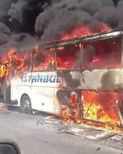 Irak’tan İstanbul’a giden M.B. yönetimindeki 16 KK 410 plakalı yolcu otobüsü, Tarsus-Pozantı Otoyolu Damlama mevkiine geldiğinde motor kısmında duman çıkmaya başladı. M.B. otobüsü emniyet şeridine çekerek 7 yolcu ve 2 personeli tahliye etti. İhbar üzerine bölgeye sevk edilen itfaiye ekipleri, alev alev yanan otobüse müdahale etti. Yangın yol kenarındaki ağaçlara da sıçradı. Ekiplerin hızlı müdahalesiyle otobüs ve ağaçlık alandaki yangın kontrol altına alındı.